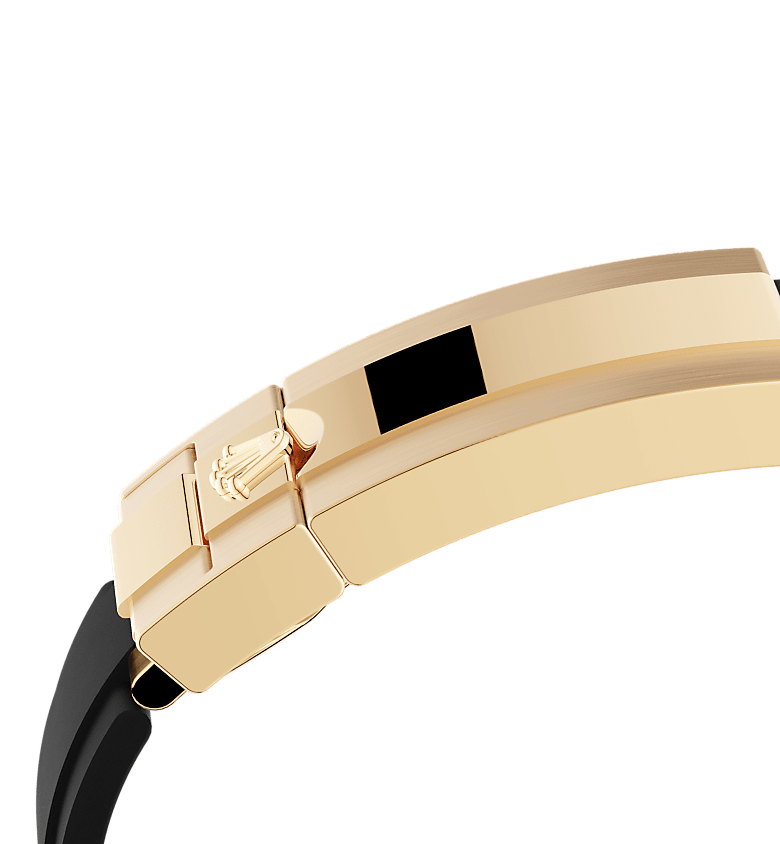 The 18 ct gold versions of the Cosmograph Daytona with a Cerachrom bezel are available with an Oysterflex bracelet. Developed by Rolex and patented, it singularly combines the robustness of a metal bracelet with the comfort of an elastomer bracelet.