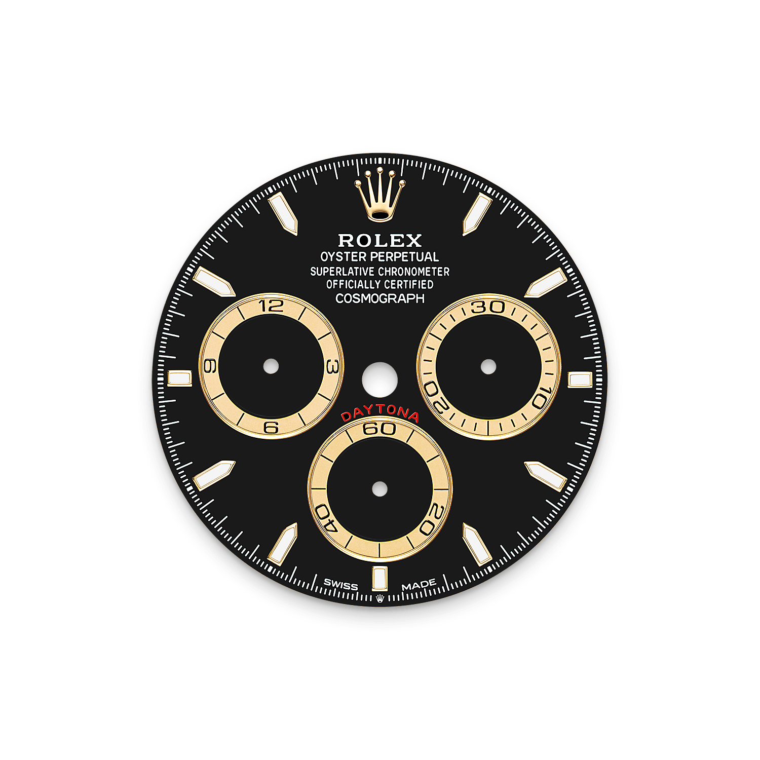 The Oyster Perpetual Cosmograph Daytona in 18 ct yellow gold with a black dial and contrasting counter rings. It features an Oysterflex bracelet and a black Cerachrom bezel with tachymetric scale.