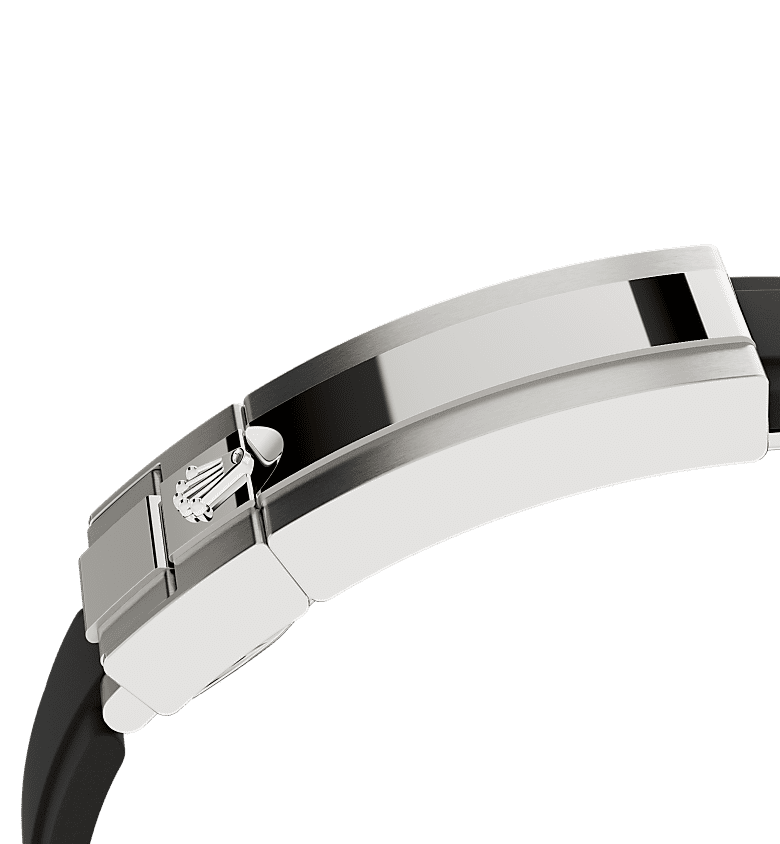 It is made up of two flexible curved metal blades – one in each bracelet section – overmoulded with high-performance black elastomer. For optimum comfort, the Oysterflex bracelet is equipped with cushions on its inner sides and an Oysterlock safety clasp to prevent accidental opening. Its length may be adjusted via the ingenious Rolex Glidelock extension system.