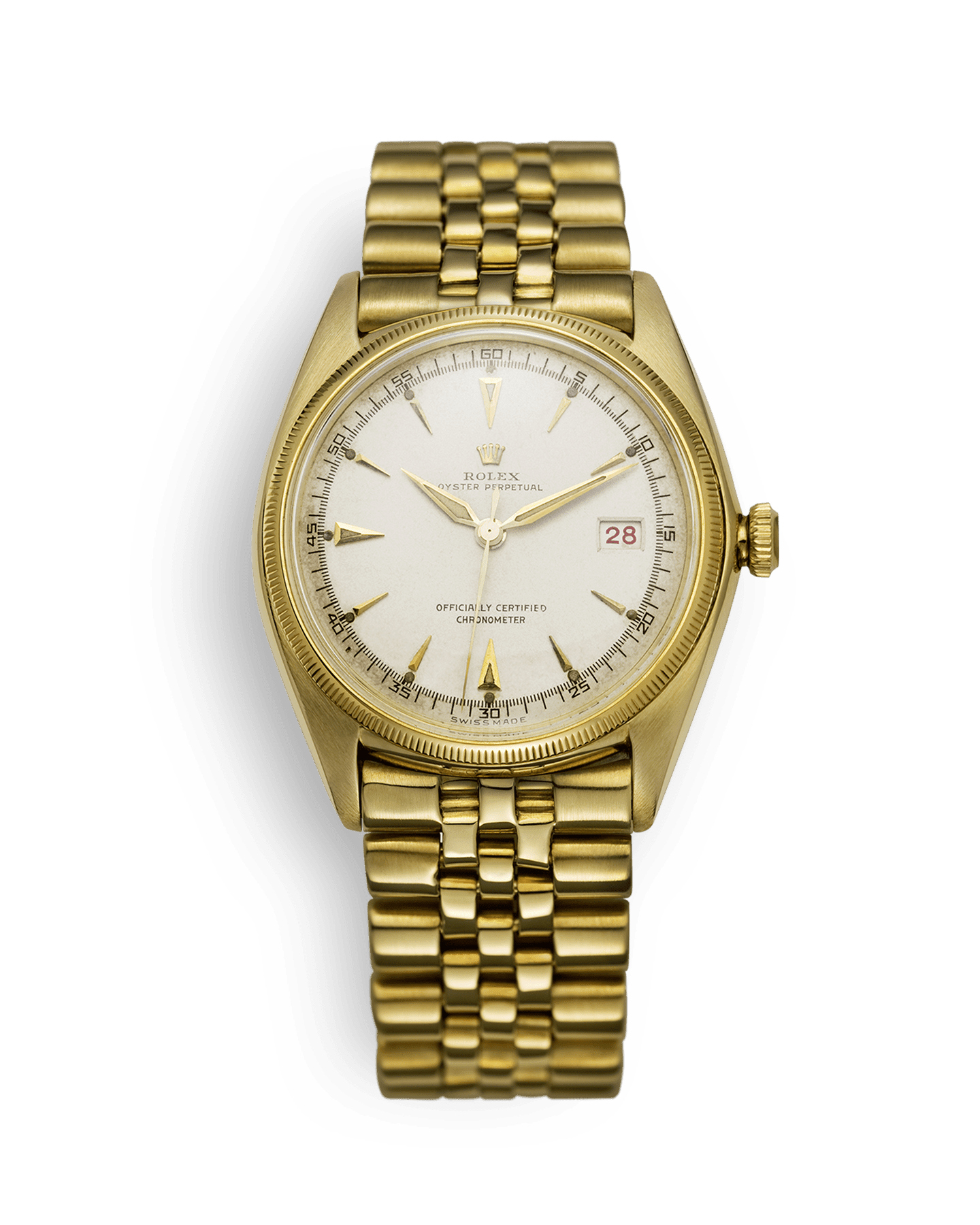 To celebrate the company’s 40th anniversary, Rolex launched the Datejust, a self-winding chronometer wristwatch with the date displayed in a window at 3 o’clock. Originally crafted exclusively in gold, the Datejust featured the Jubilee bracelet, specially created for the occasion, thereby affirming its status as a prestige watch.