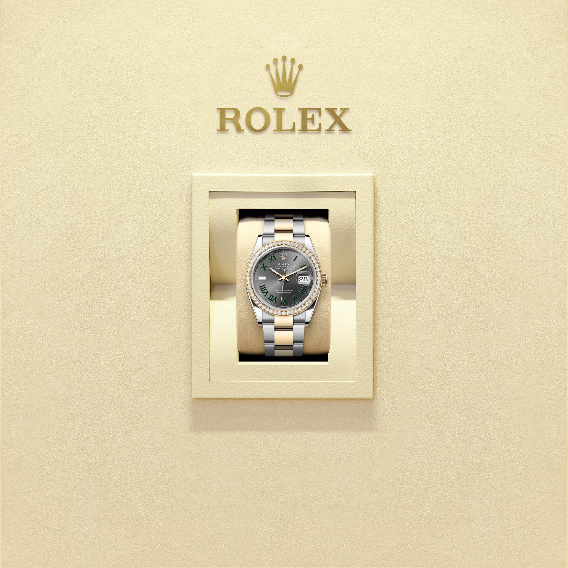 This Oyster Perpetual Datejust 36 in Oystersteel and yellow gold features a slate dial and an Oyster bracelet.