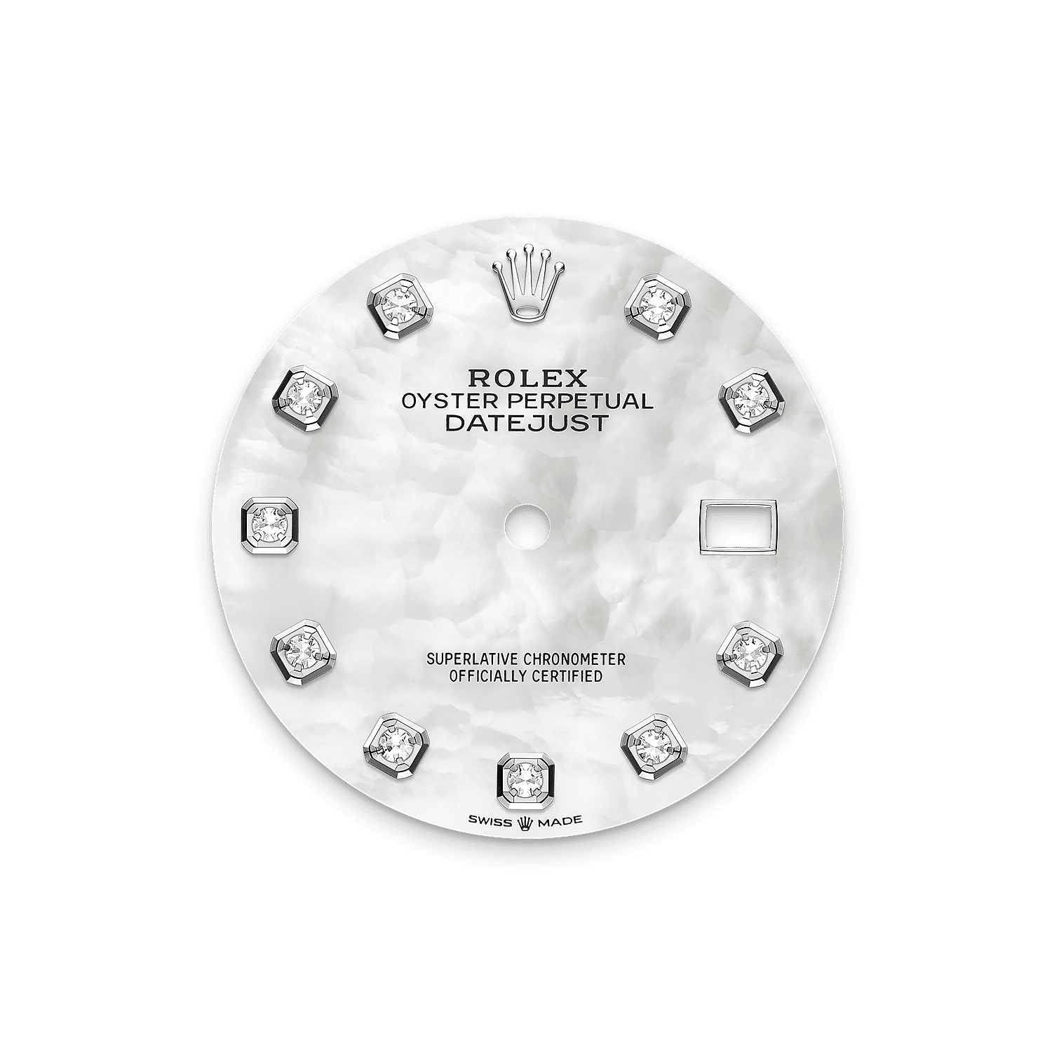 At Rolex, mother-of-pearl is never artificially coloured. Instead, particular know-how and skill are devoted to simply highlighting its natural beauty and preserving the original hues. As all mother-of-pearl dials are unique pieces, an identical dial will never be found on another wrist.