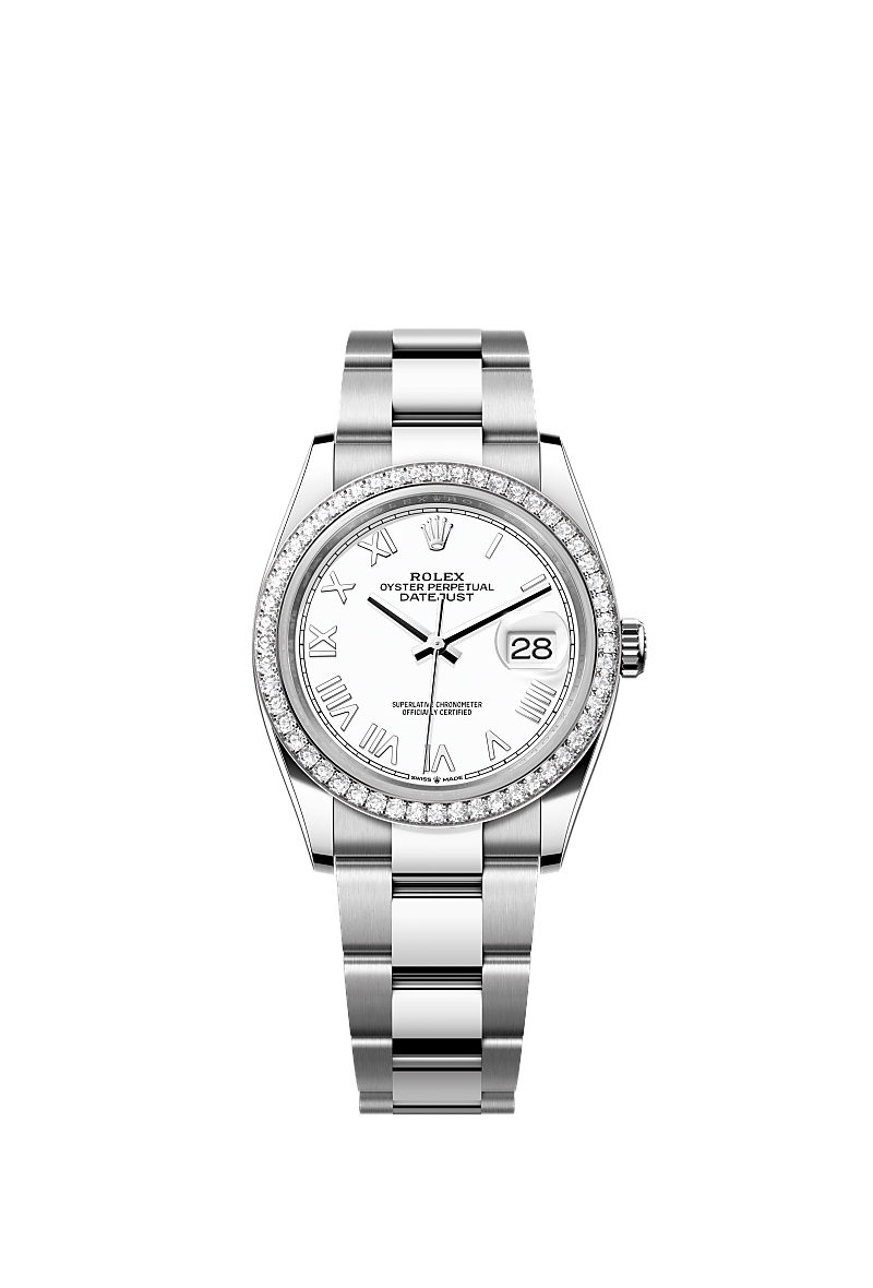 Datejust 36Oyster, 36 mm, Oystersteel, white gold and diamondsReference 126284RBR