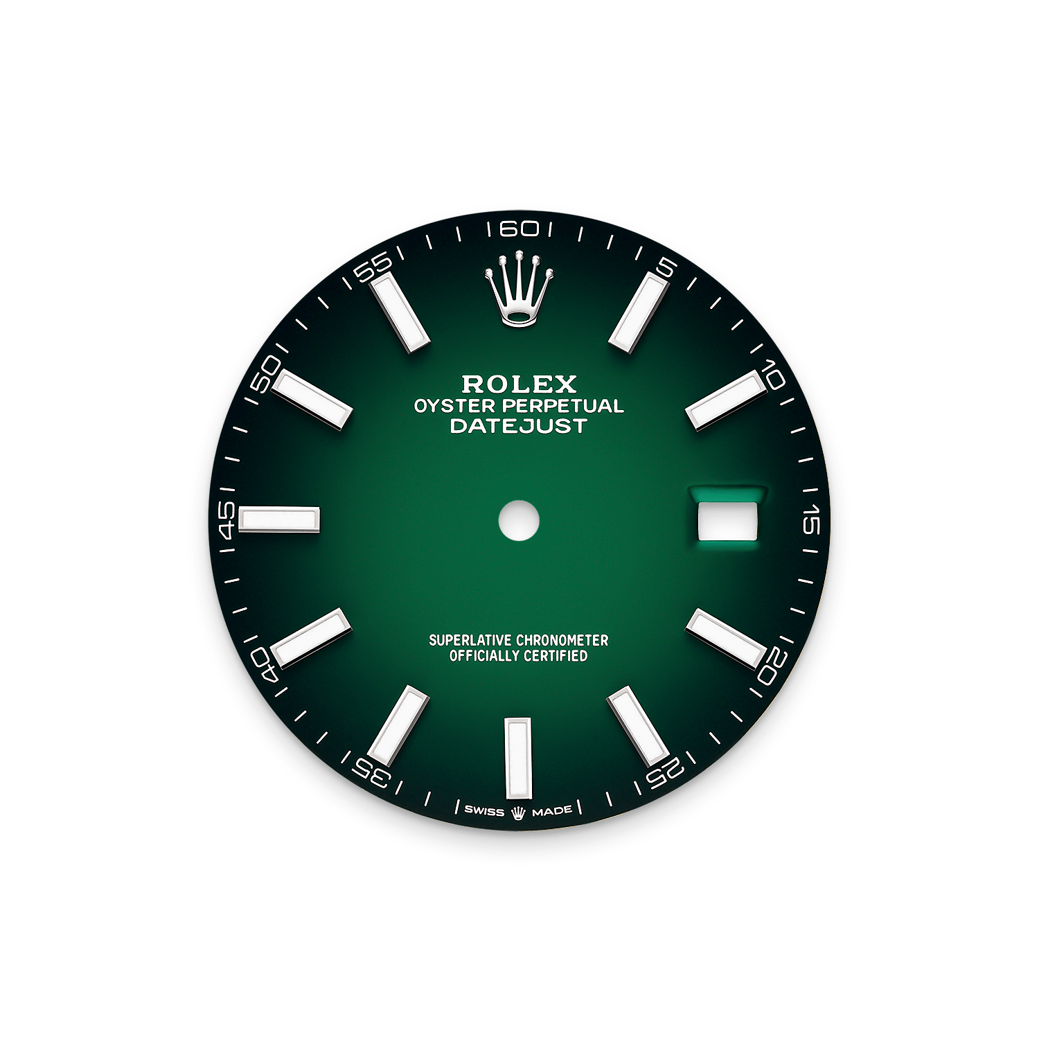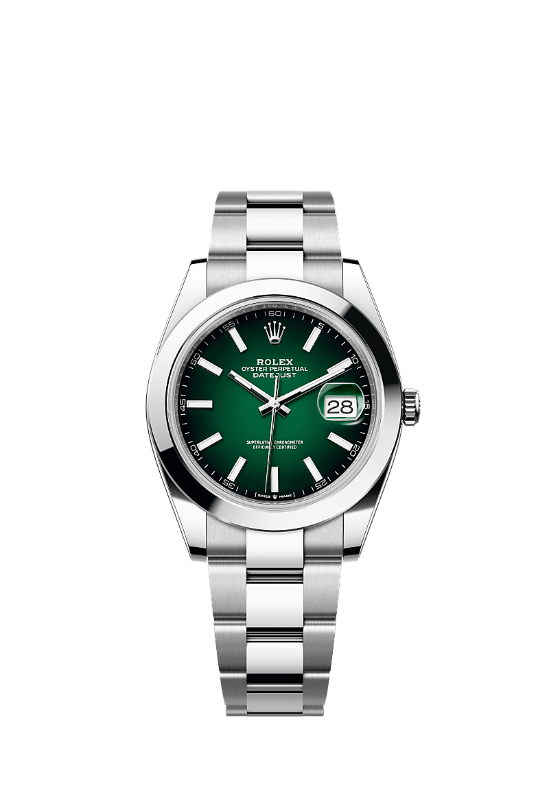 This Oyster Perpetual Datejust 41 in Oystersteel features a green ombré dial and an Oyster bracelet.