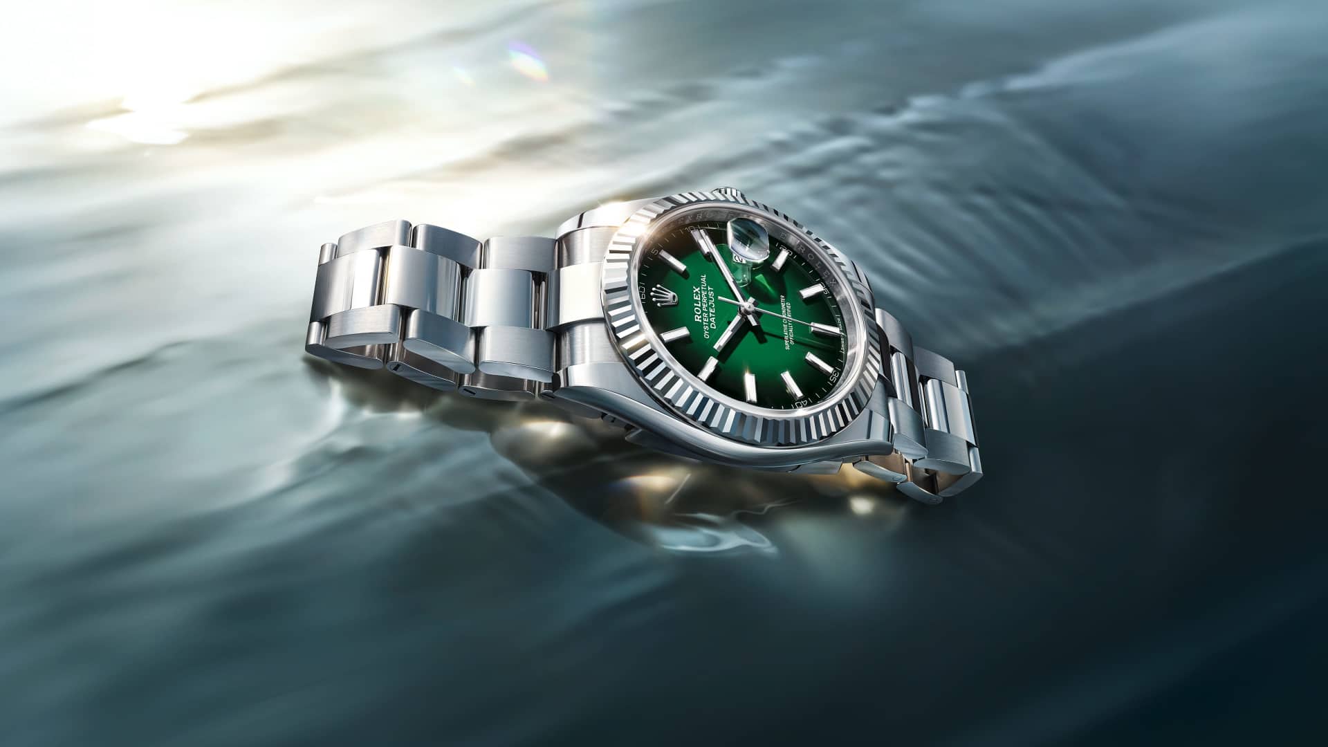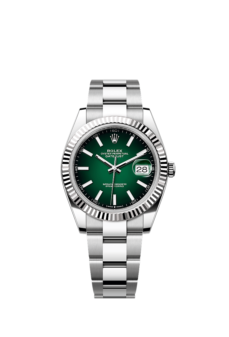 This Oyster Perpetual Datejust 41 in Oystersteel and white gold features a green ombré dial and an Oyster bracelet.