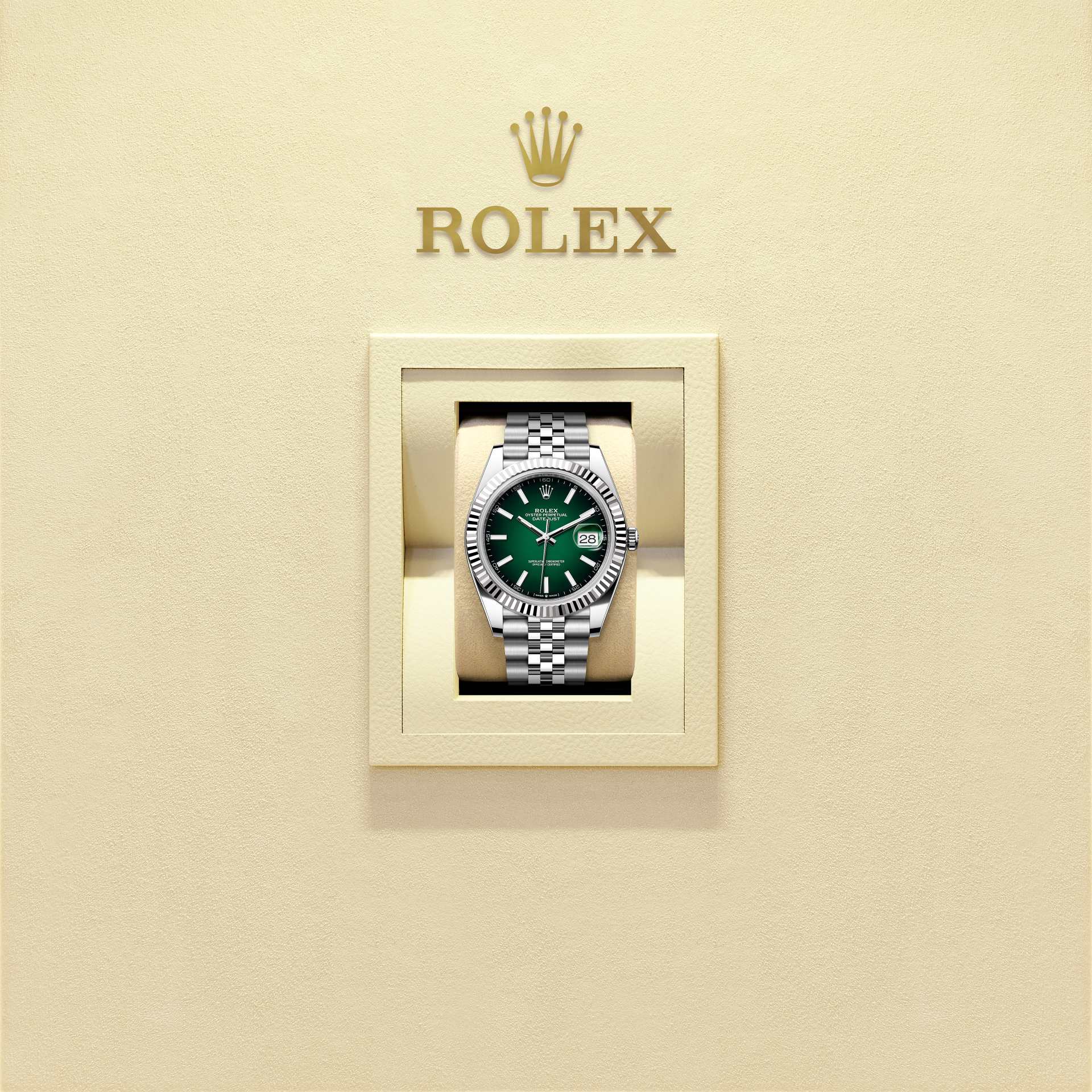 And, as with all the components of the watch, aesthetic controls by the human eye guarantee impeccable beauty. The Jubilee, a supple and comfortable five-piece link metal bracelet, was designed and made especially for the launch of the Oyster Perpetual Datejust in 1945.