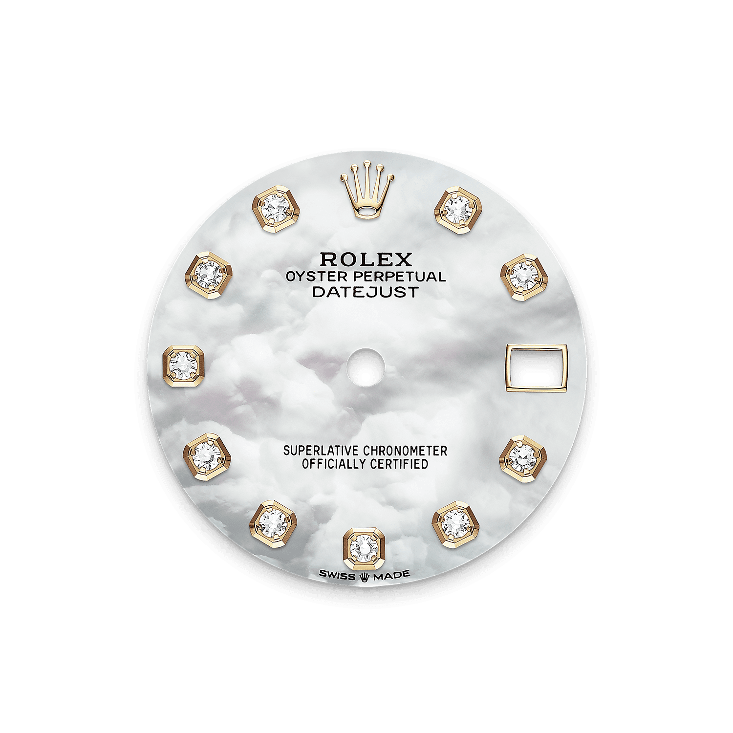 At Rolex, mother-of-pearl is never artificially coloured. Instead, particular know-how and skill are devoted to simply highlighting its natural beauty and preserving the original hues. As all mother-of-pearl dials are unique pieces, an identical dial will never be found on another wrist.