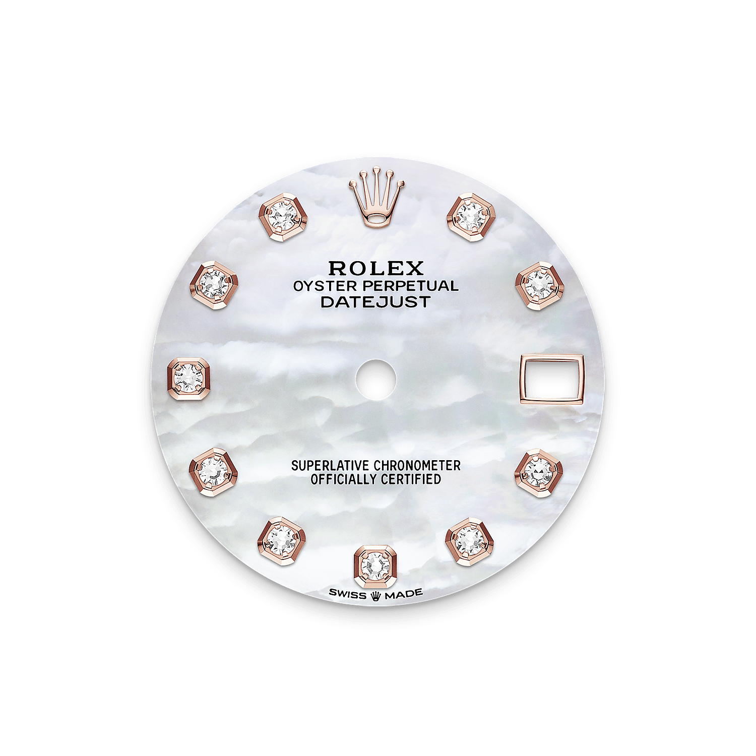 At Rolex, mother-of-pearl is never artificially coloured. Instead, particular know-how and skill are devoted to simply highlighting its natural beauty and preserving the original hues. As all mother-of-pearl dials are unique pieces, an identical dial will never be found on another wrist.
