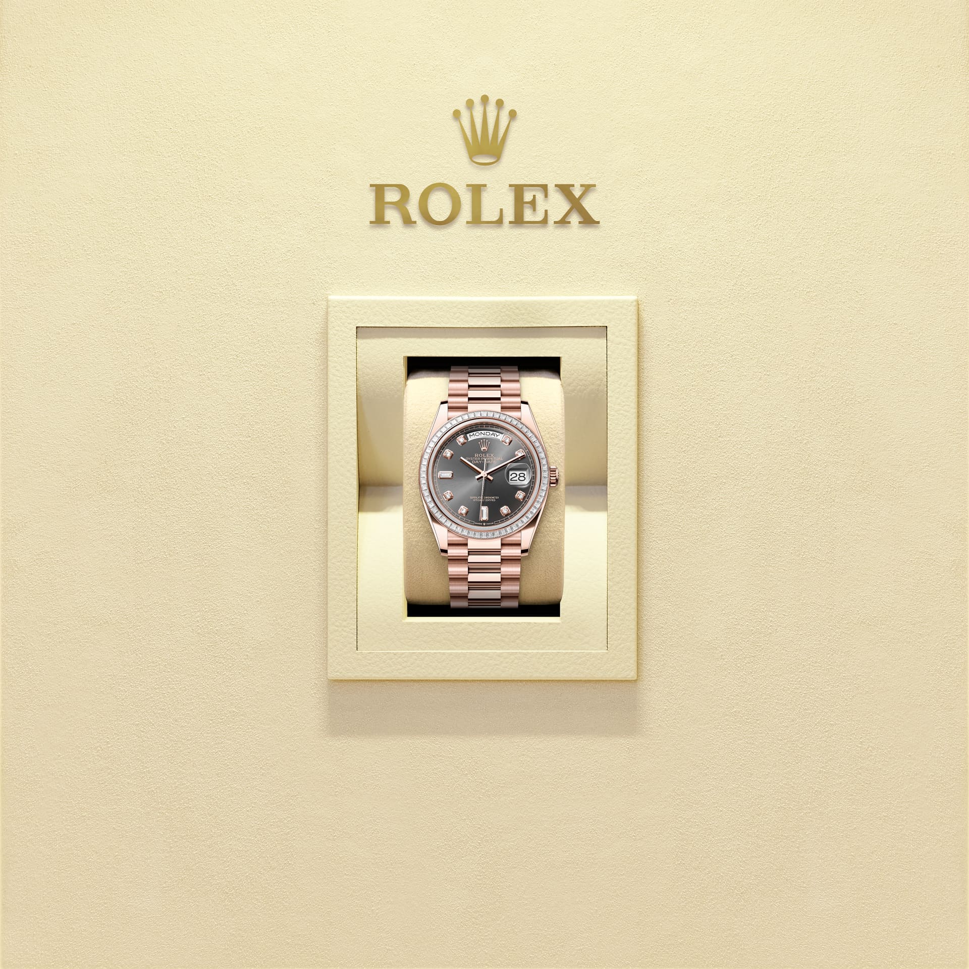 To preserve the beauty of its pink gold watches, Rolex created and patented an exclusive 18 ct pink gold alloy cast in its own foundry: Everose gold.
