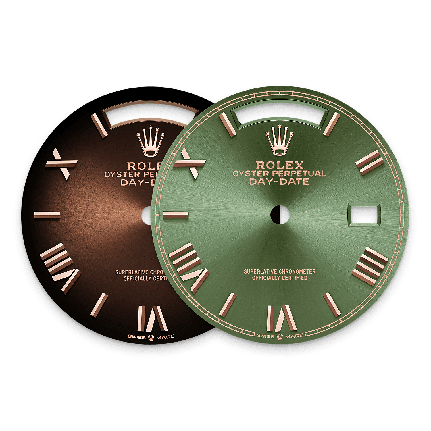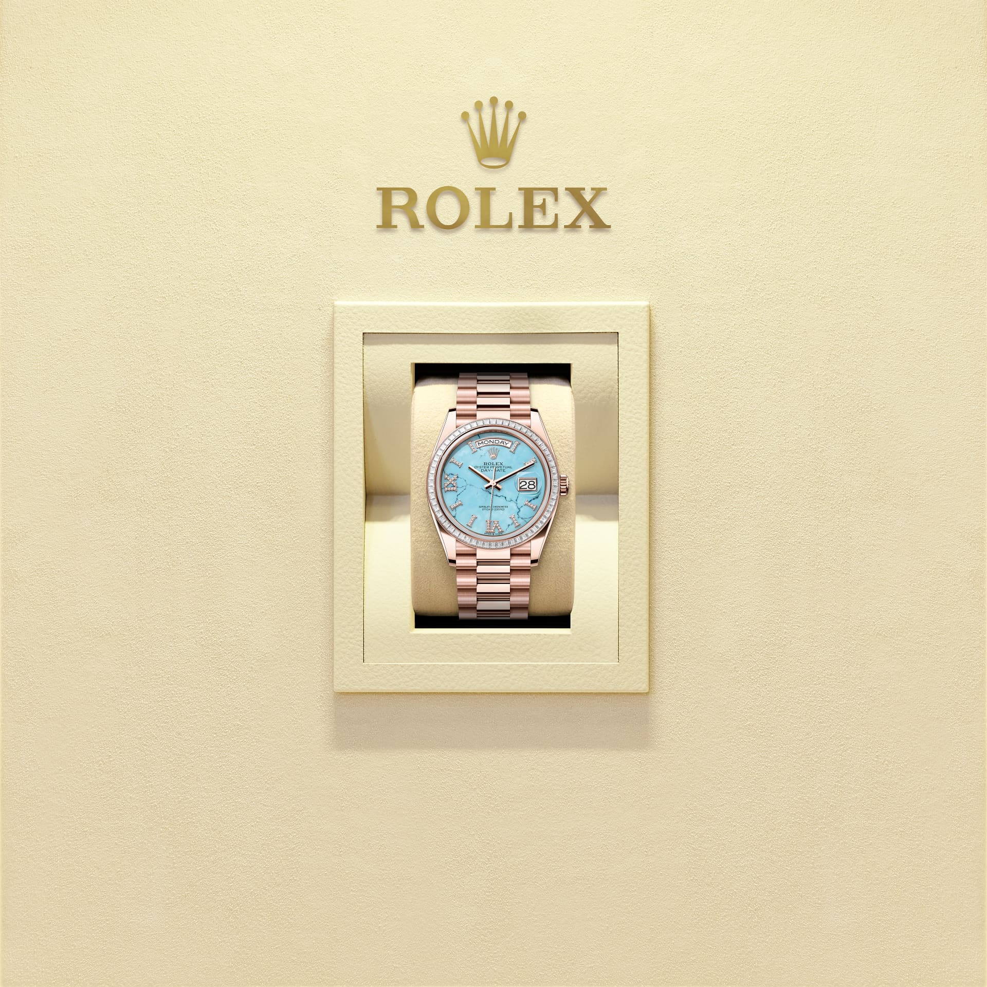 Only found in a few places on Earth, turquoise has been prized for thousands of years for its special hue. Rolex selects turquoise for the beauty of its structure and its characteristic, rare blue colour, because it marries perfectly with yellow and white gold. It is exclusively reserved for gold or platinum versions of the Day-Date 36.