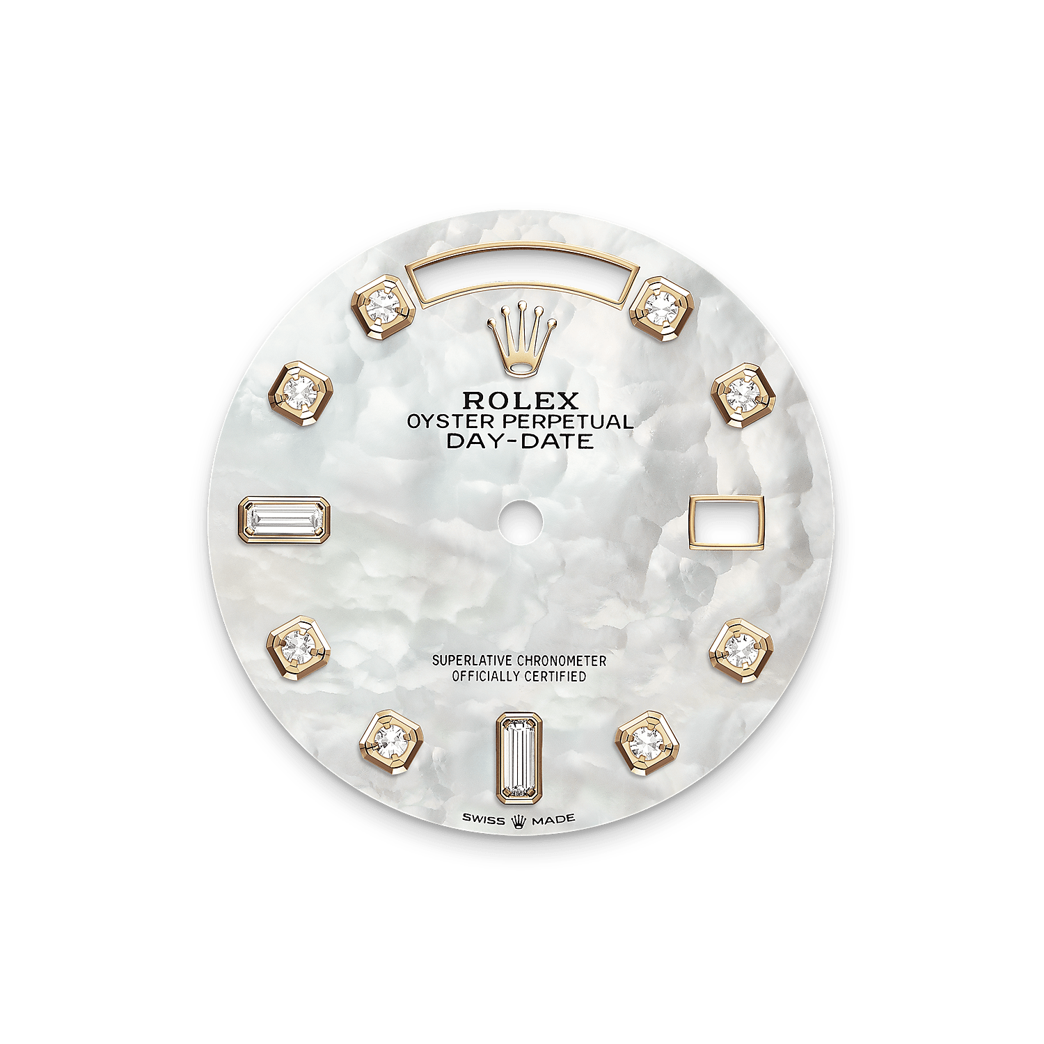 At Rolex, mother-of-pearl is never artificially coloured. Instead, particular know-how and skill are devoted to simply highlighting its natural beauty and preserving the original hues. As all mother-of-pearl dials are unique pieces, an identical dial will never be found on another wrist.