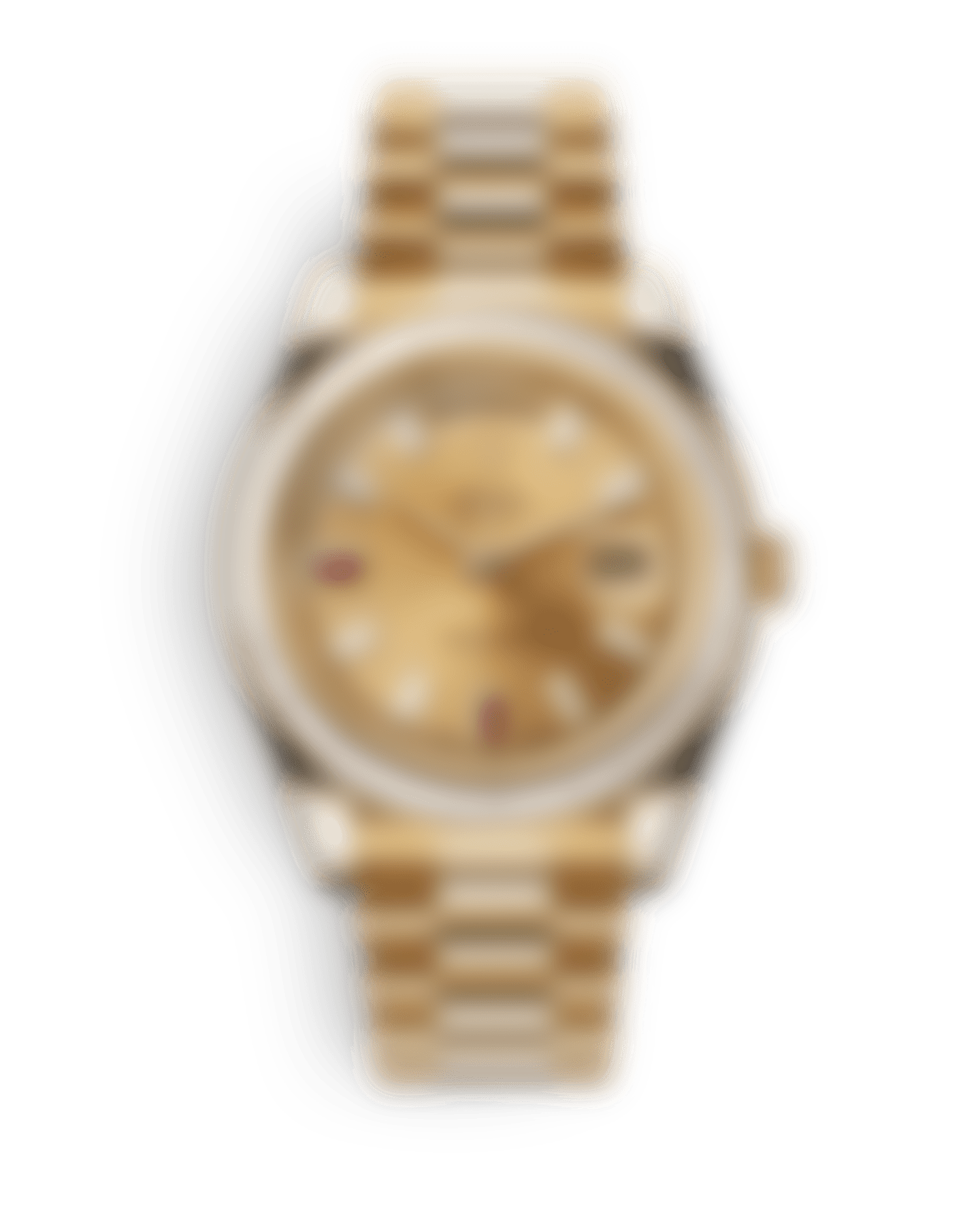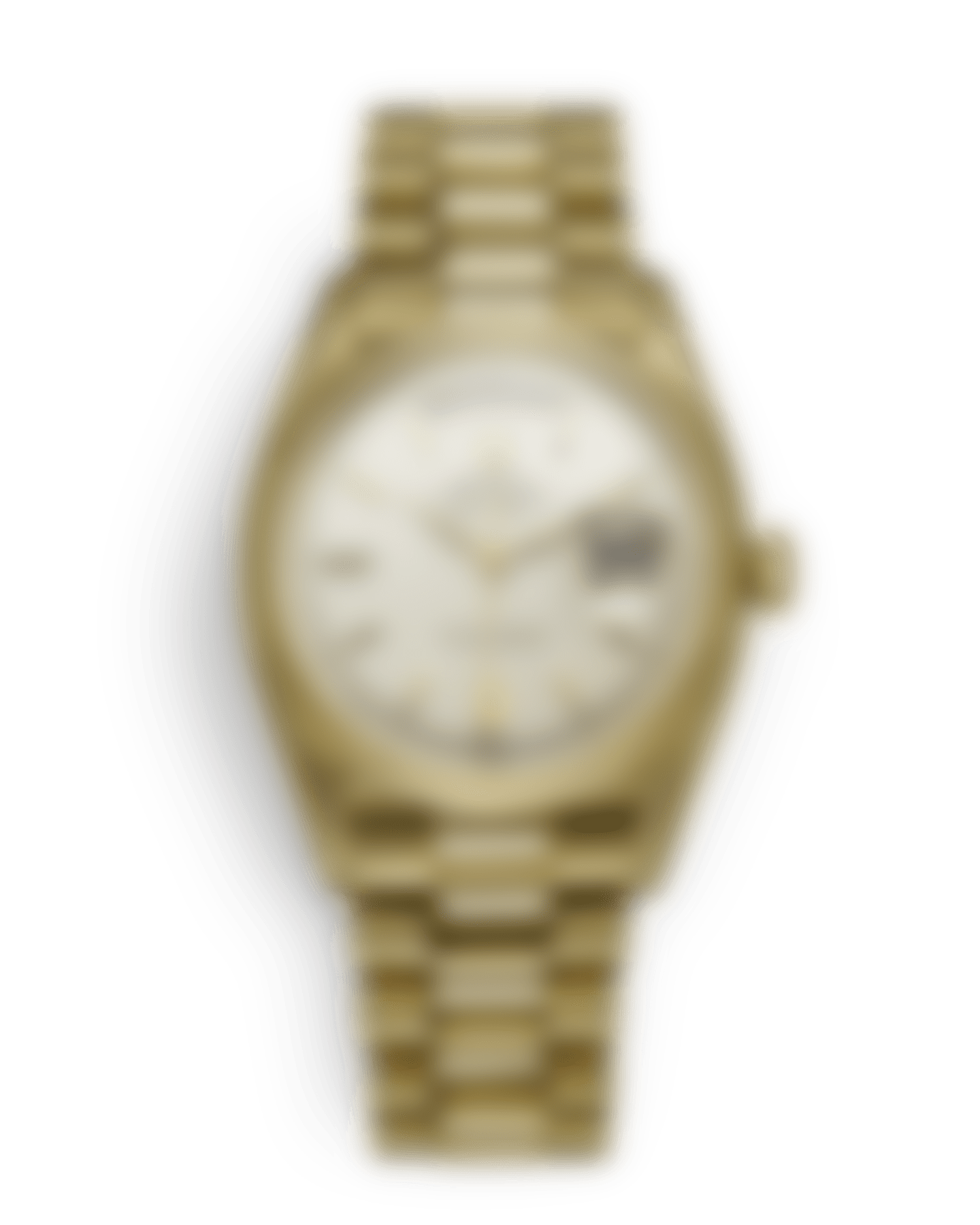 The Day-Date is a calendar wristwatch that displays both the date and the day of the week spelt out in full. Ever since its launch, it has been associated with powerful and influential figures, as expressed in the tagline: “Men who guide the destinies of the world wear Rolex watches.” The Day‑Date quickly became a universal symbol of prestige and leadership.