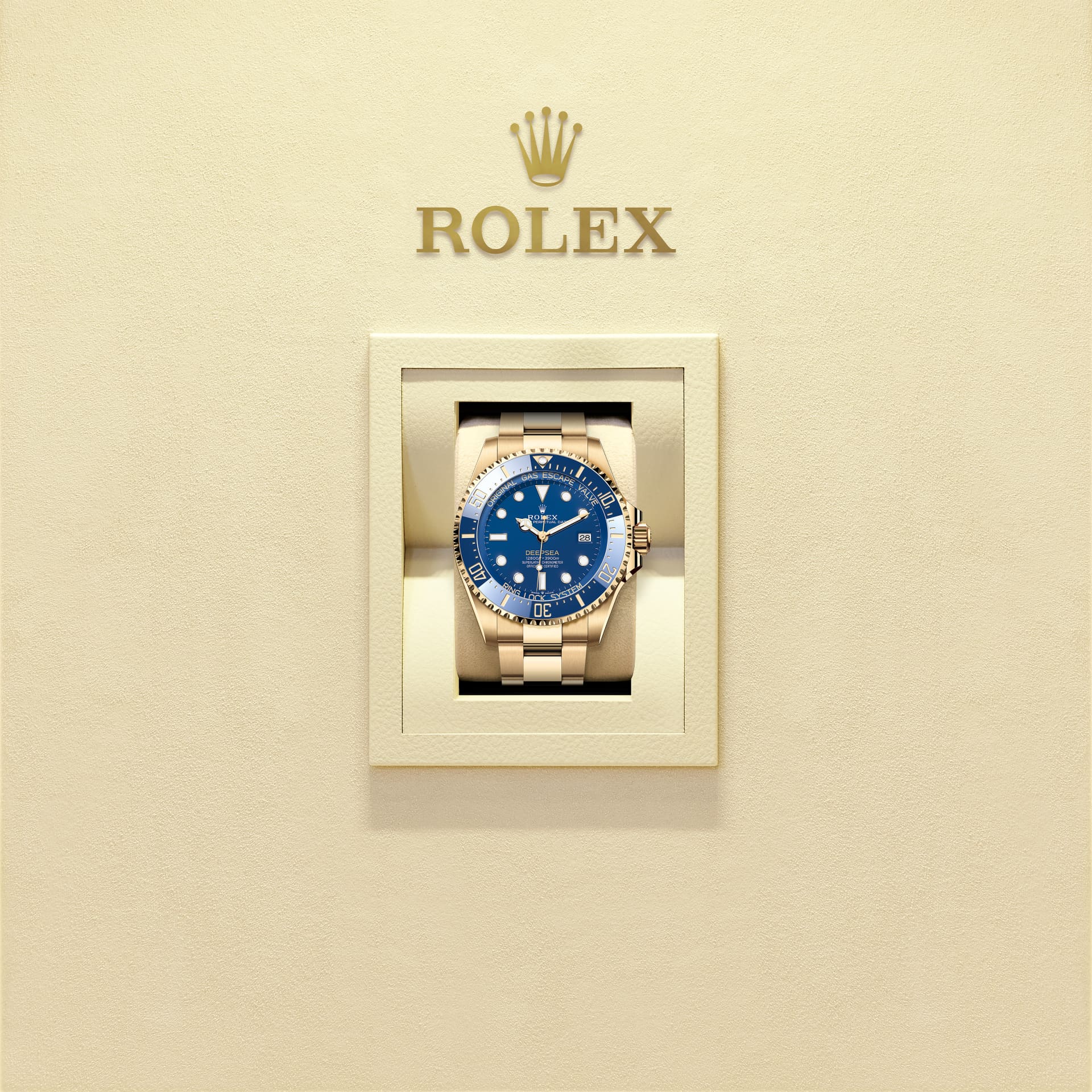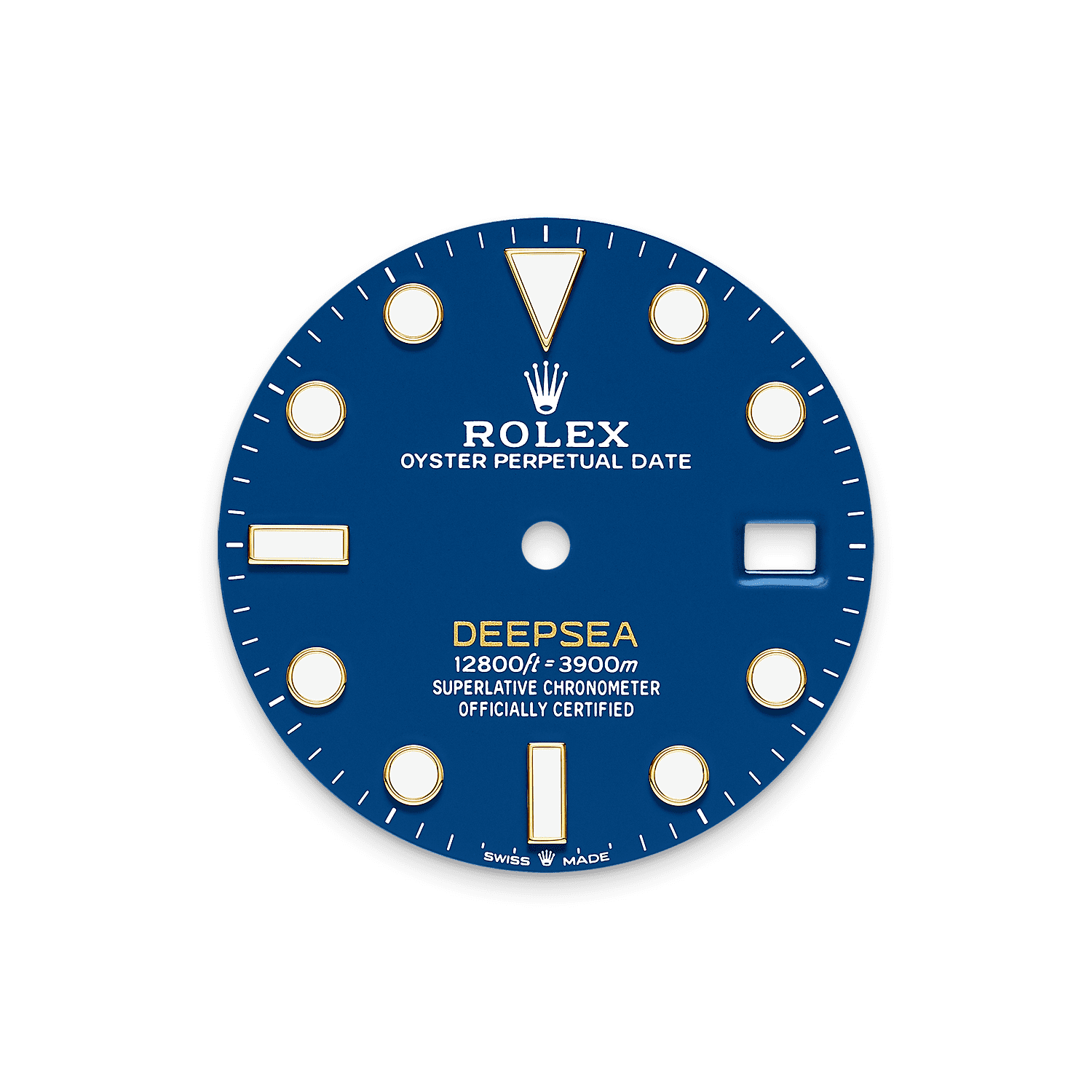 The Oyster Perpetual Rolex Deepsea in 18 ct yellow gold with a Cerachrom bezel insert in blue ceramic and an Oyster bracelet.