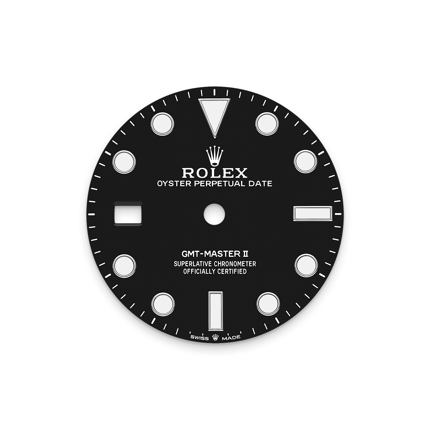 Like all Rolex Professional watches, the GMT-Master II offers exceptional legibility in all circumstances, and especially in the dark, thanks to its Chromalight display. The broad hands and hour markers in simple shapes – triangles, circles, rectangles – are filled with a luminescent material emitting a long-lasting glow.
