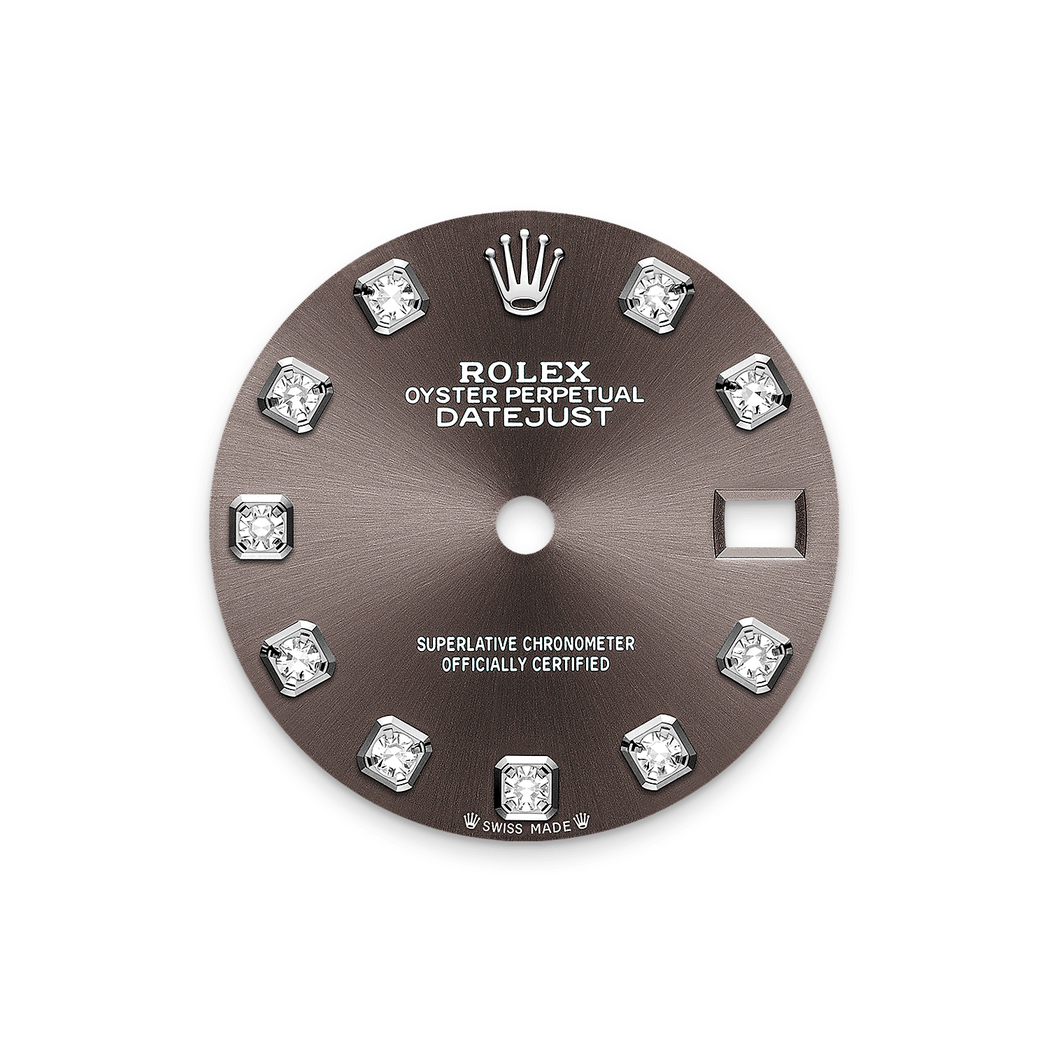 This dial features diamonds in 18 ct gold settings. The sunray finish creates delicate light reflections on many dials in the Oyster Perpetual collection. It is obtained using masterful brushing techniques that create grooves running outwards from the centre of the dial.