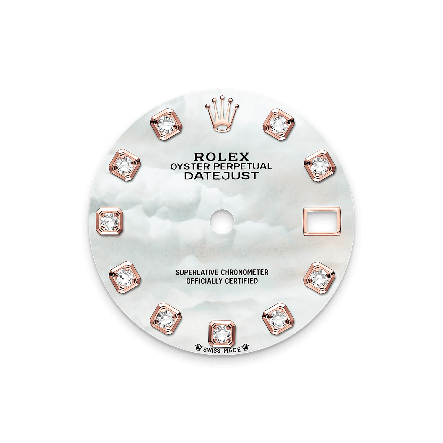 At Rolex, mother-of-pearl is never artificially coloured. Instead, particular know-how and skill are devoted to simply highlighting its natural beauty and preserving the original hues. As all mother-of-pearl dials are unique pieces, an identical dial will never be found on another wrist.