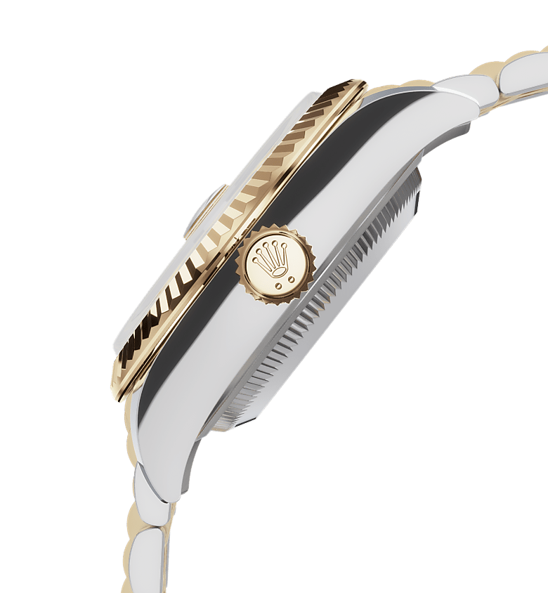 It was therefore identical to the fluting on the case back, which was also screwed onto the case for waterproofness, using specific Rolex tools. Over time, the fluting became an aesthetic element, a genuine Rolex signature feature. Today the fluted bezel is a mark of distinction, in gold on this Lady-Datejust.