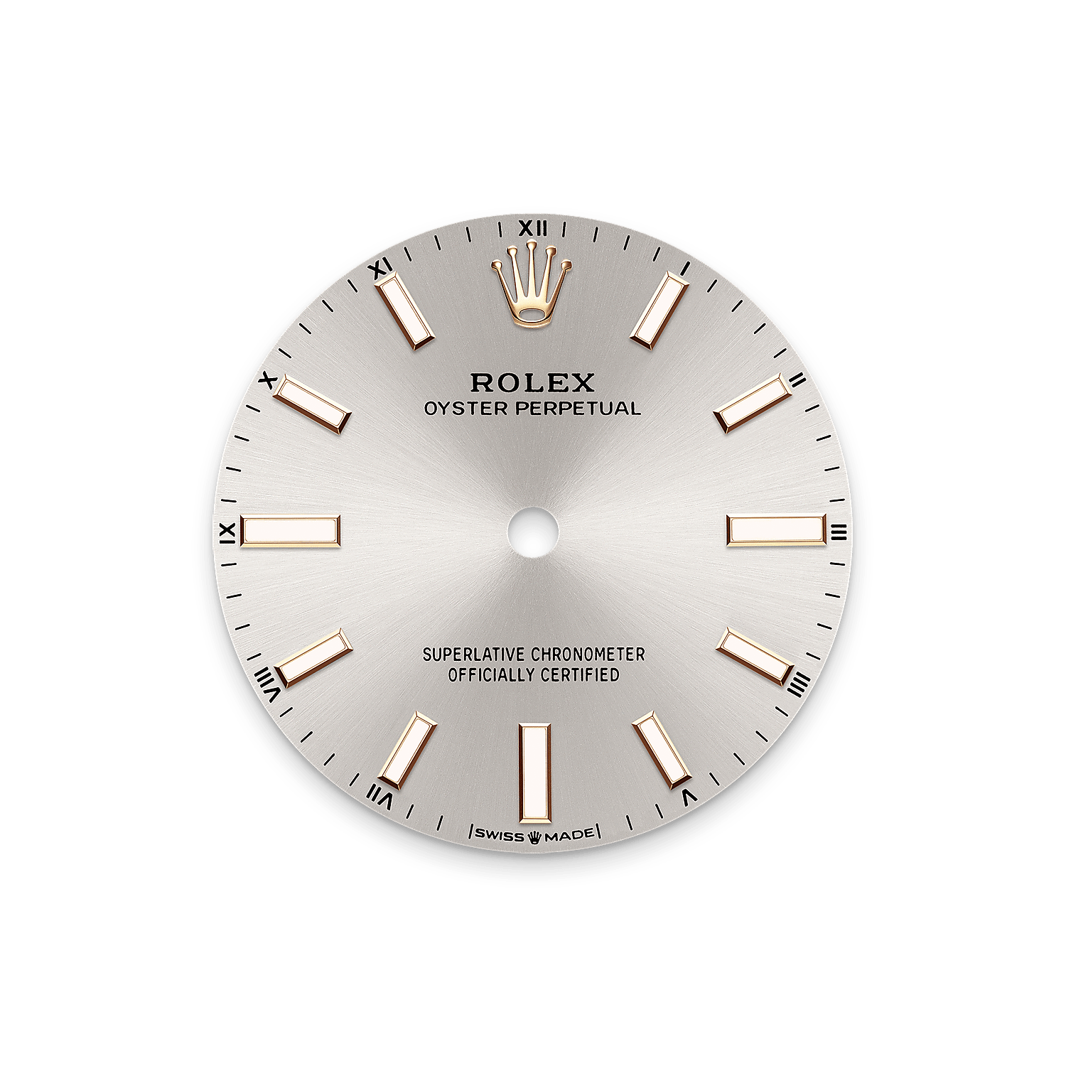 The sunray finish creates delicate light reflections on many dials in the Oyster Perpetual collection. It is obtained using masterful brushing techniques that create grooves running outwards from the centre of the dial.