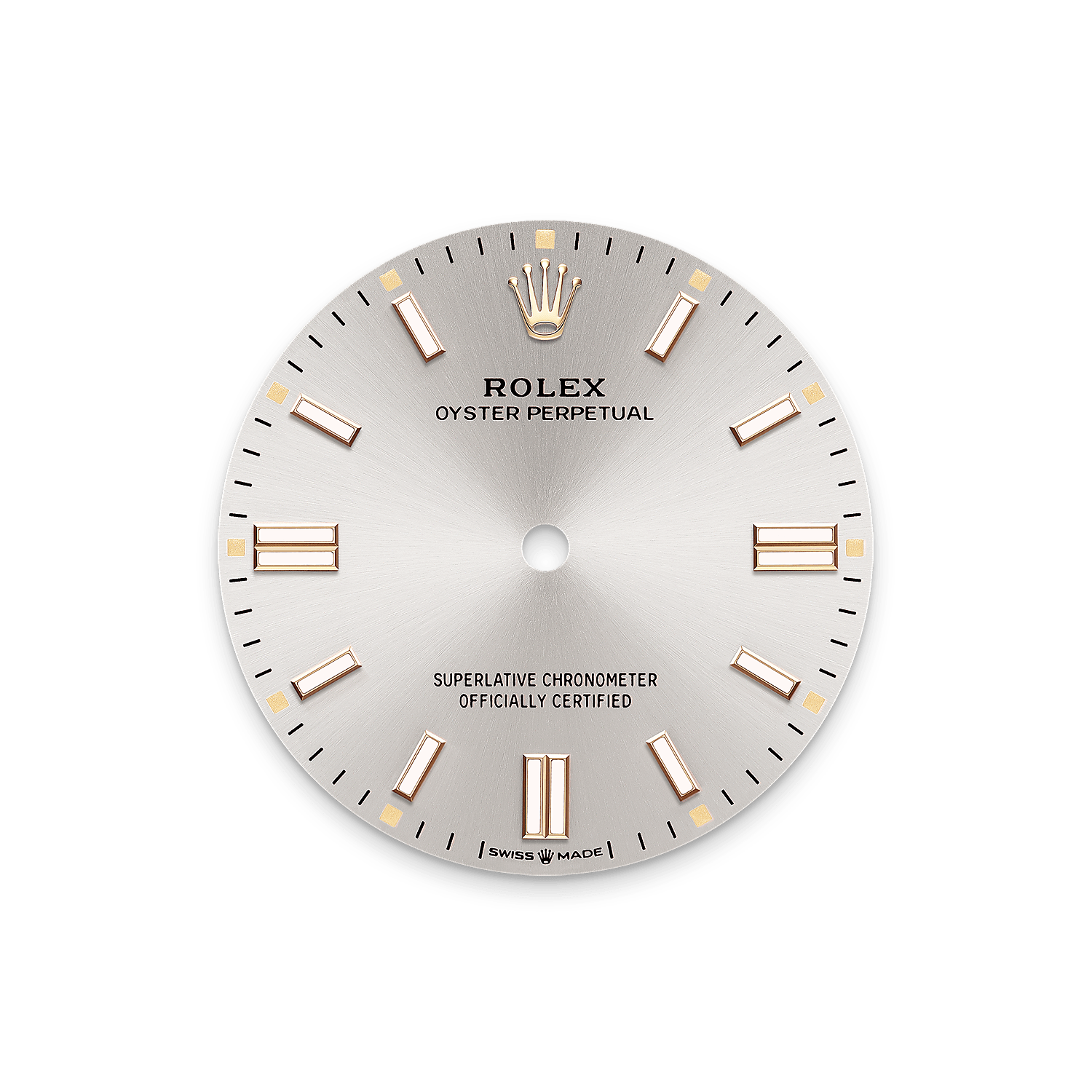 The sunray finish creates delicate light reflections on many dials in the Oyster Perpetual collection. It is obtained using masterful brushing techniques that create grooves running outwards from the centre of the dial.