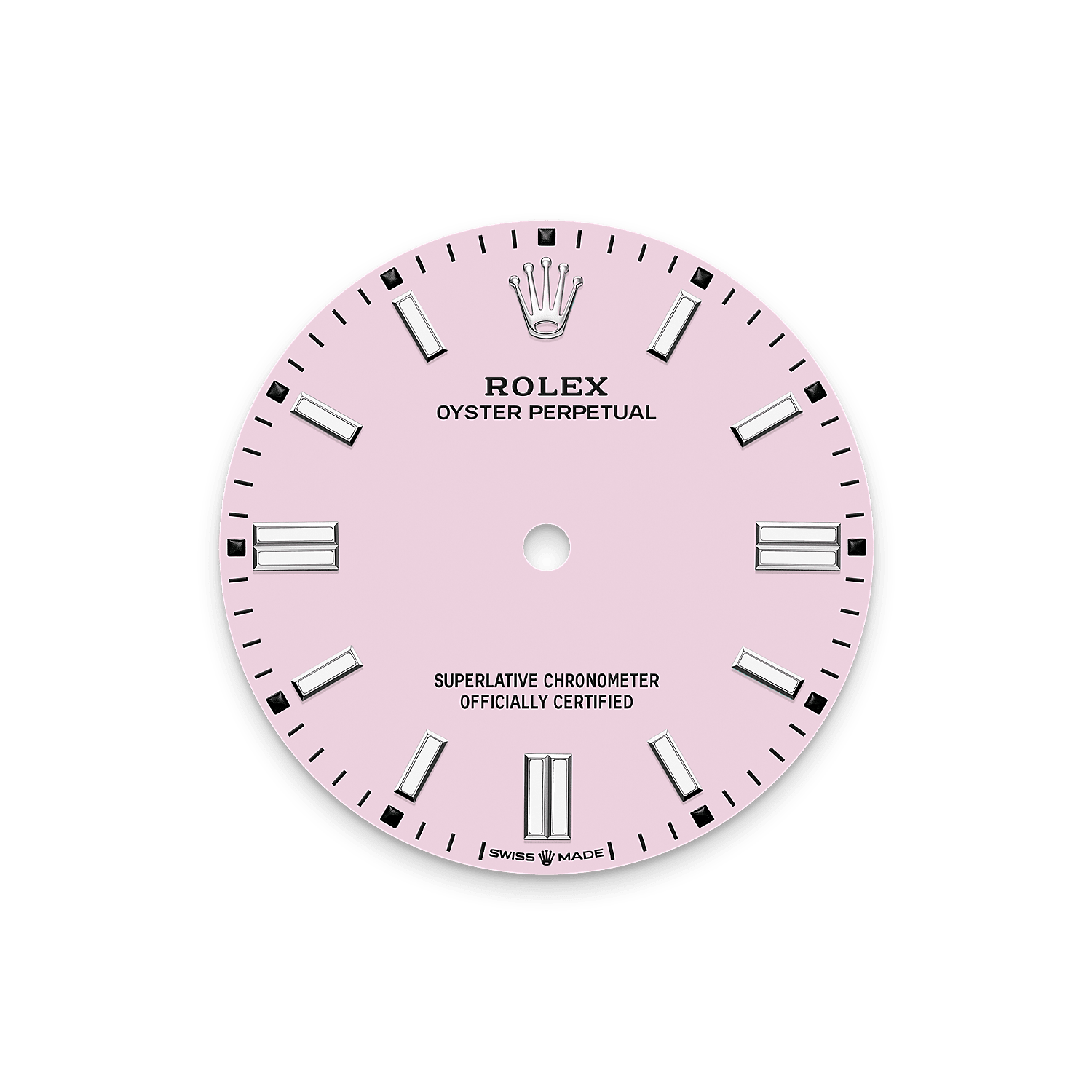 The colours created for the Oyster Perpetual range start life as a lacquer, which must be meticulously applied in a controlled-atmosphere environment to avoid dust and other contamination.