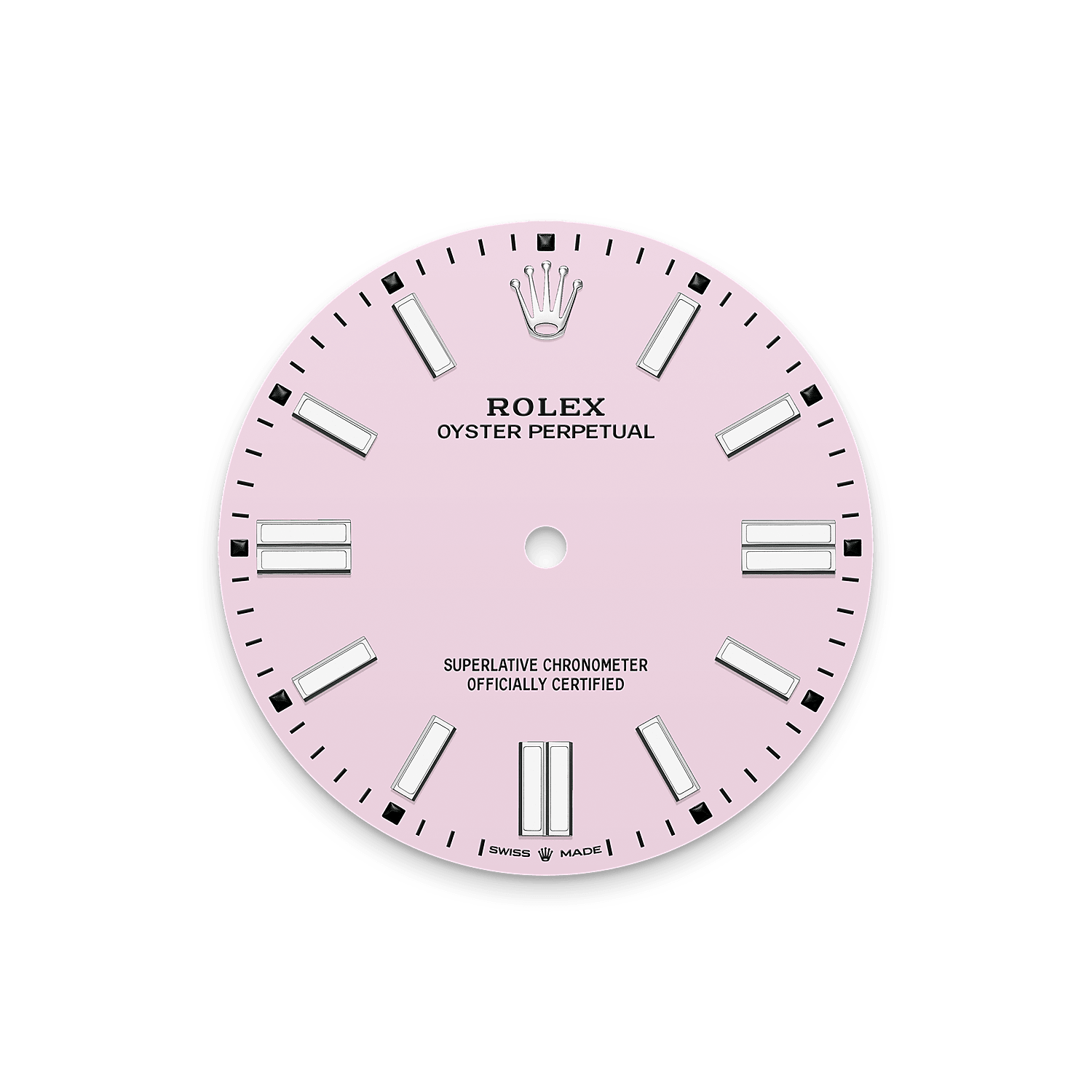 The colours created for the Oyster Perpetual range start life as a lacquer, which must be meticulously applied in a controlled-atmosphere environment to avoid dust and other contamination.