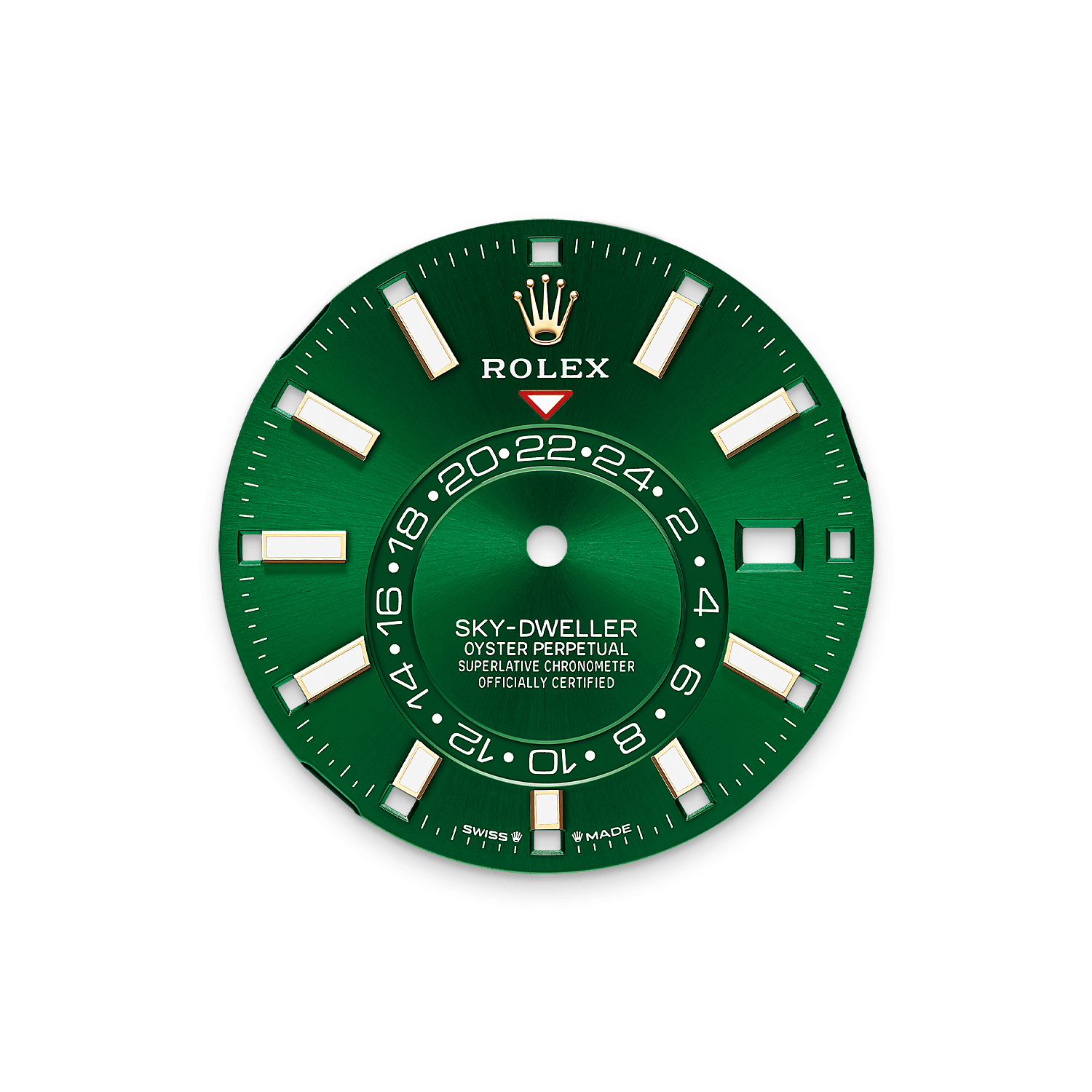 The Oyster Perpetual Sky-Dweller in 18 ct yellow gold with a bright green dial and an Oyster bracelet.