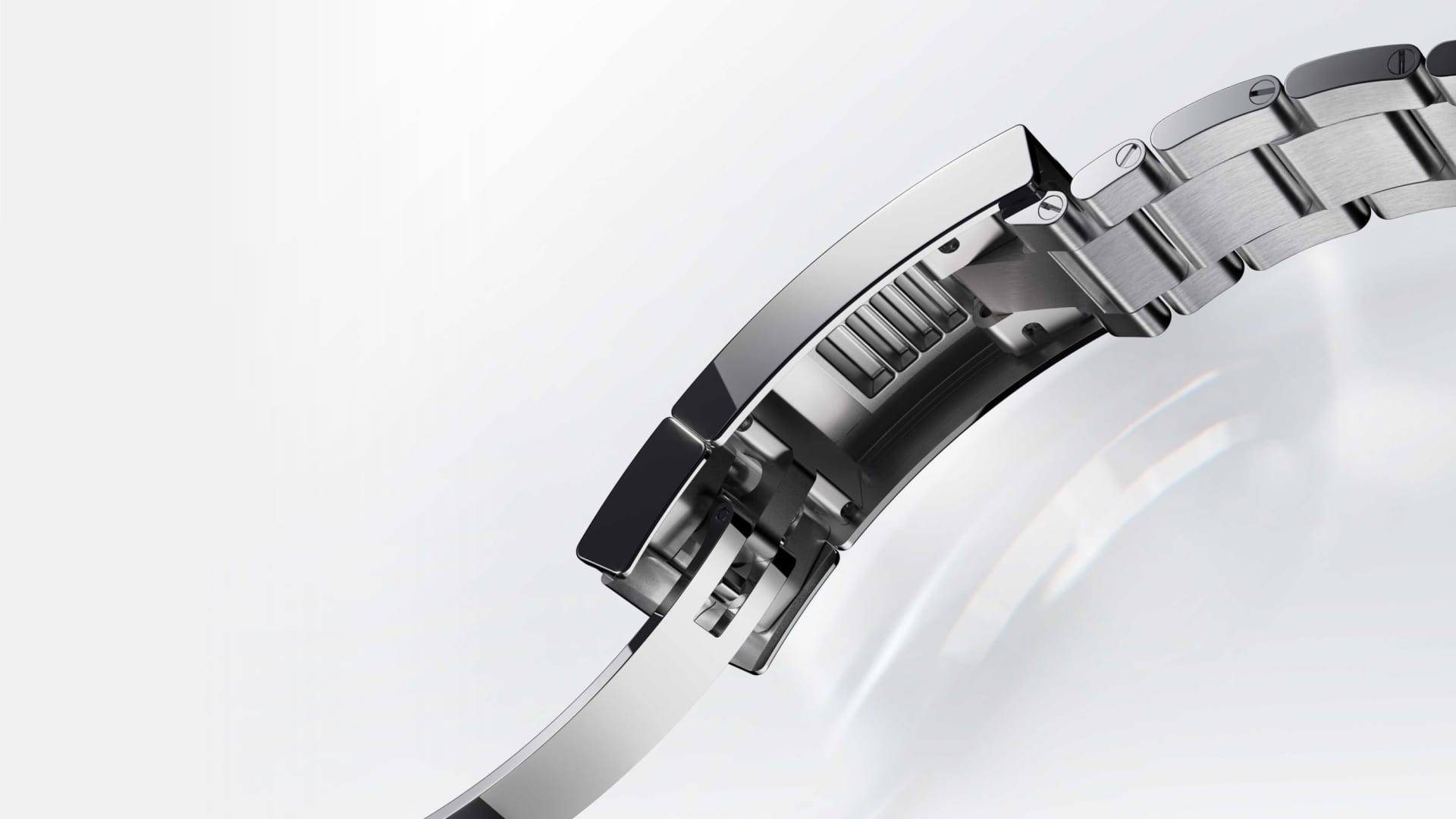 It is equipped with an Oysterlock clasp, which prevents accidental opening, and an ingenious Glidelock, allowing fine adjustments of the bracelet without using any tools — and allowing it to be worn comfortably over a diving suit.