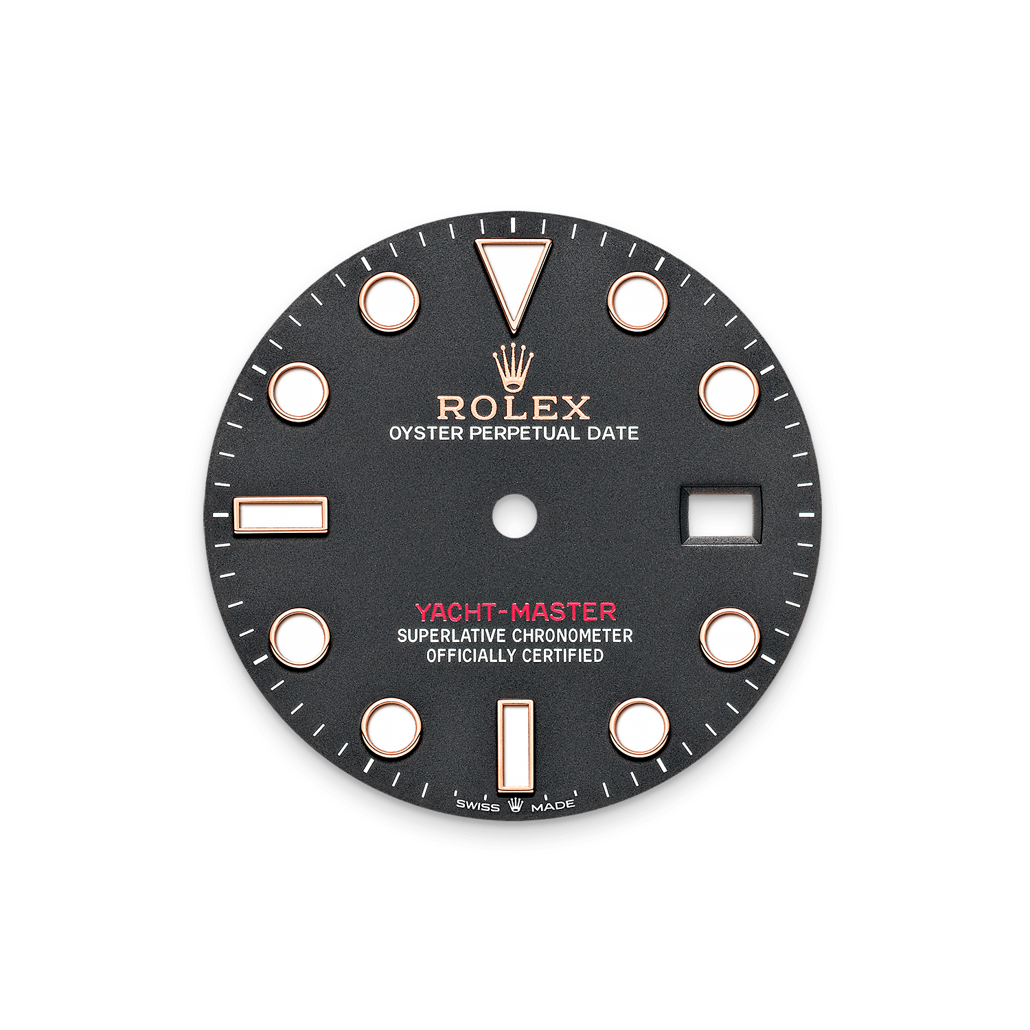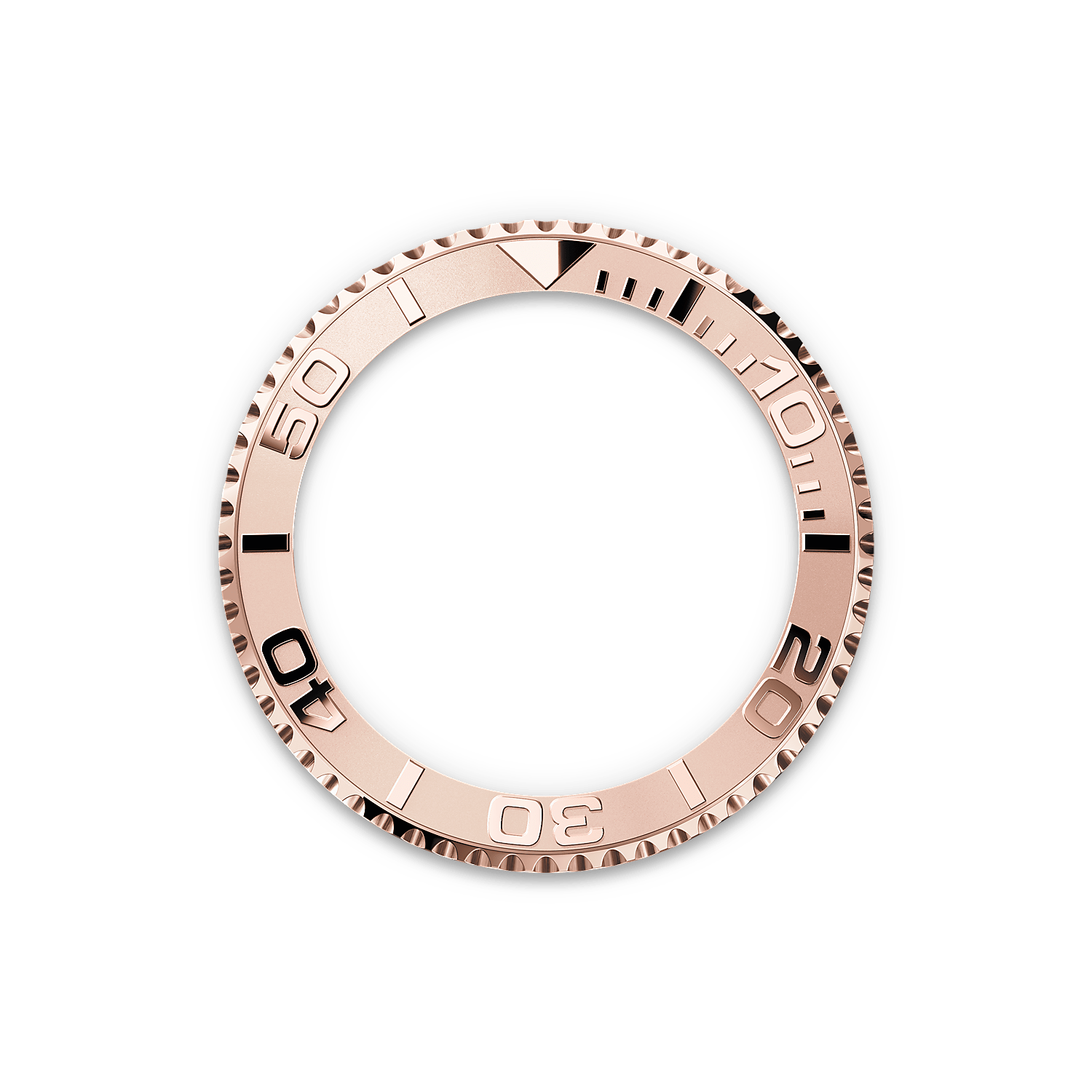 The Yacht-Master’s bidirectional rotatable 60-minute graduated bezel is made entirely from precious metal – Everose gold or platinum – or fitted with a Cerachrom insert in high-tech ceramic, depending on the model. The raised polished numerals and graduations stand out clearly against a matt, sand-blasted background.