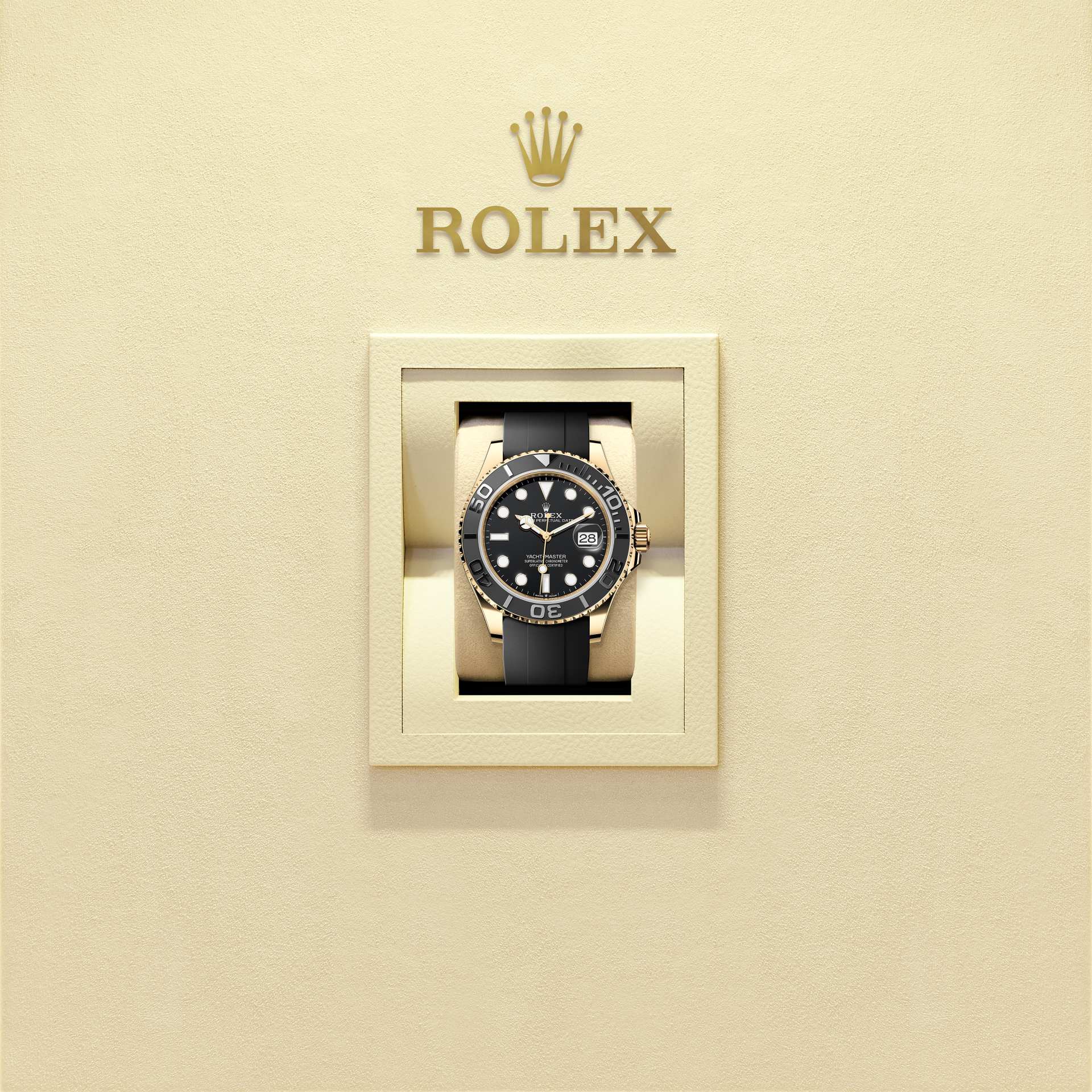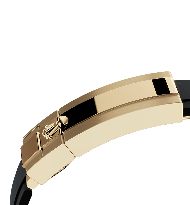 The blade is overmoulded with high-performance black elastomer which is particularly resistant to environmental effects, very durable and perfectly inert for the wearer of the watch. For enhanced comfort, the inside of the Oysterflex bracelet is equipped with a patented longitudinal cushion system that stabilizes the watch on the wrist and fitted with an 18 ct yellow gold Oysterlock safety clasp. It also features the Rolex Glidelock extension system, designed by the brand and patented. This inventive toothed mechanism, integrated beneath the clasp, allows fine adjustment of the bracelet length by some 15 mm in increments of approximately 2.5 mm, without the use of tools.