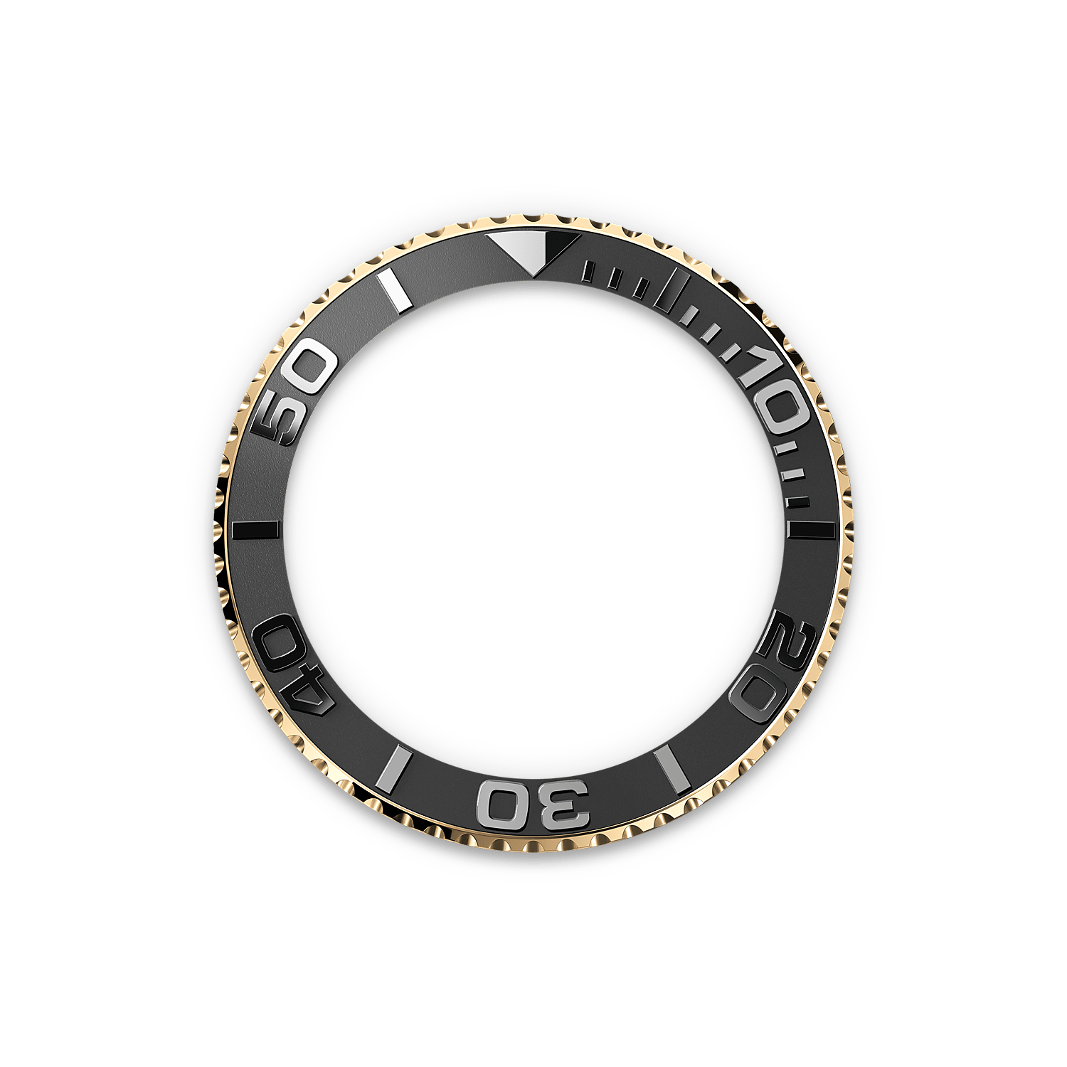 The Yacht-Master’s bidirectional rotatable 60-minute graduated bezel is made entirely from precious metal – Everose gold or platinum – or fitted with a Cerachrom insert in high-tech ceramic, depending on the model. The raised polished numerals and graduations stand out clearly against a matt, sand-blasted background.