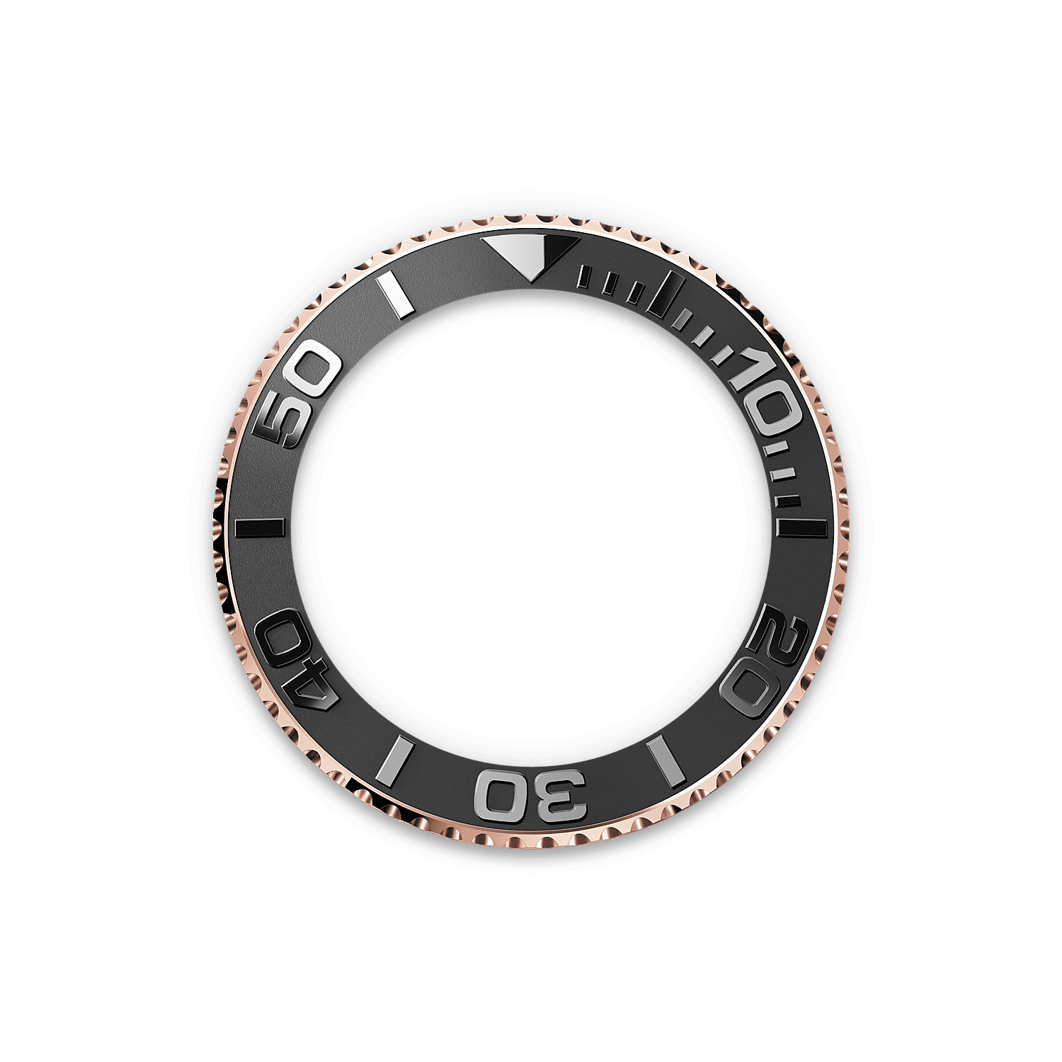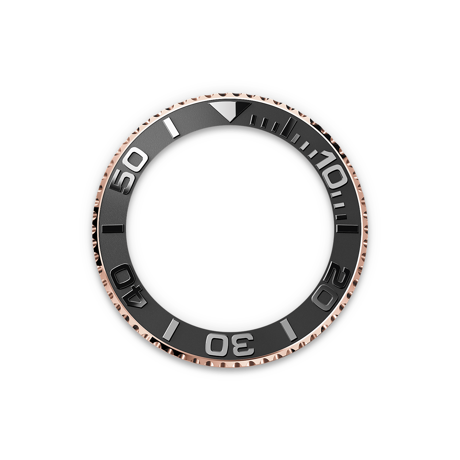 The Yacht-Master’s bidirectional rotatable 60-minute graduated bezel is made entirely from precious metal – Everose gold or platinum – or fitted with a Cerachrom insert in high-tech ceramic, depending on the model. The raised polished numerals and graduations stand out clearly against a matt, sand-blasted background.