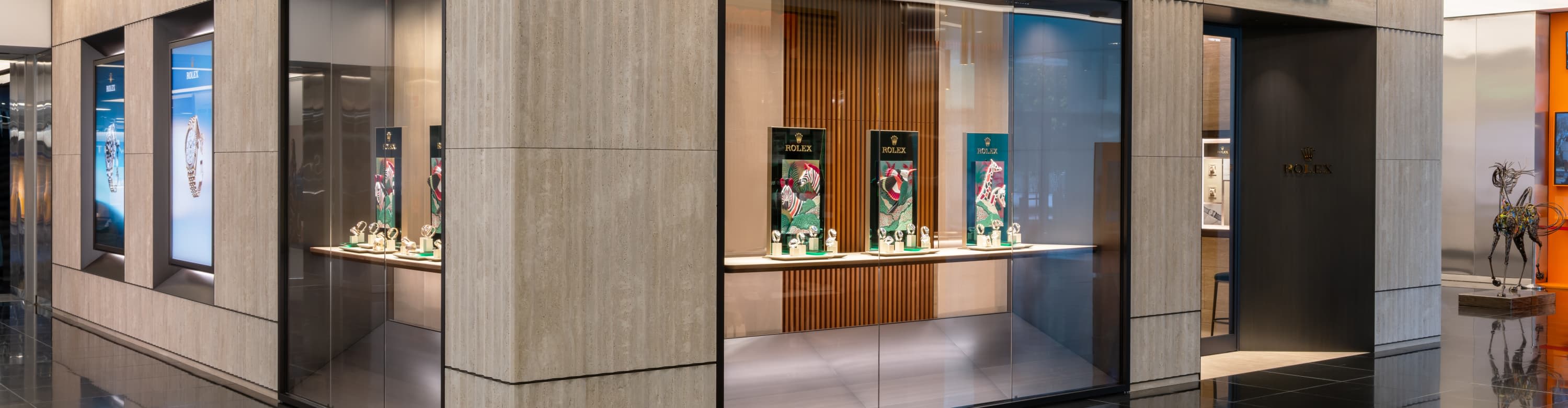 我们的专卖店均按照劳力士日内瓦所制定的室内设计概念进行装潢摆设,象征品牌与ROLEX BOUTIQUE