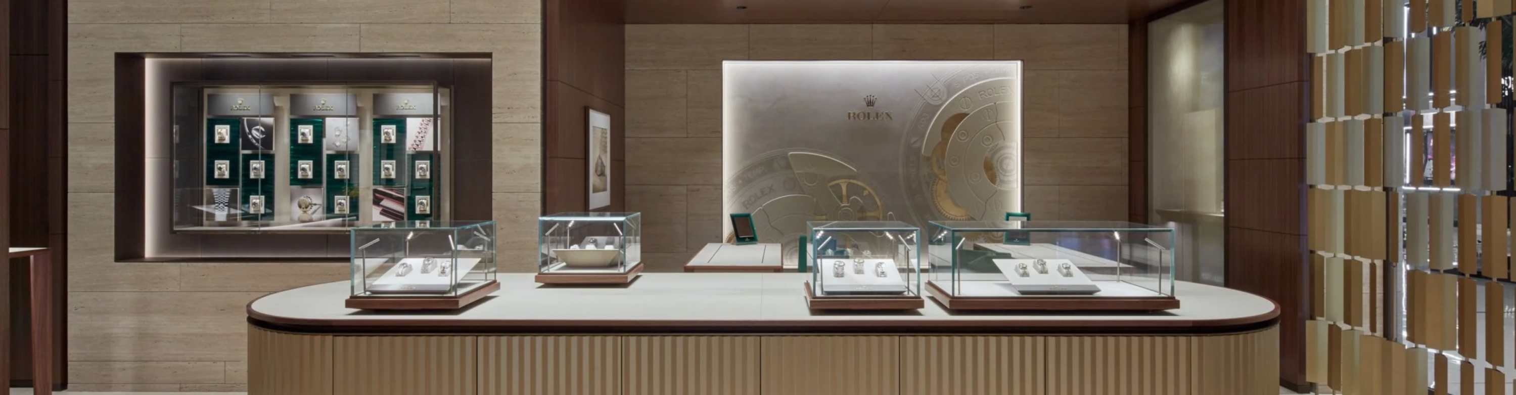 我们的专卖店均按照劳力士日内瓦所制定的室内设计概念进行装潢摆设,象征品牌与ROLEX BOUTIQUE