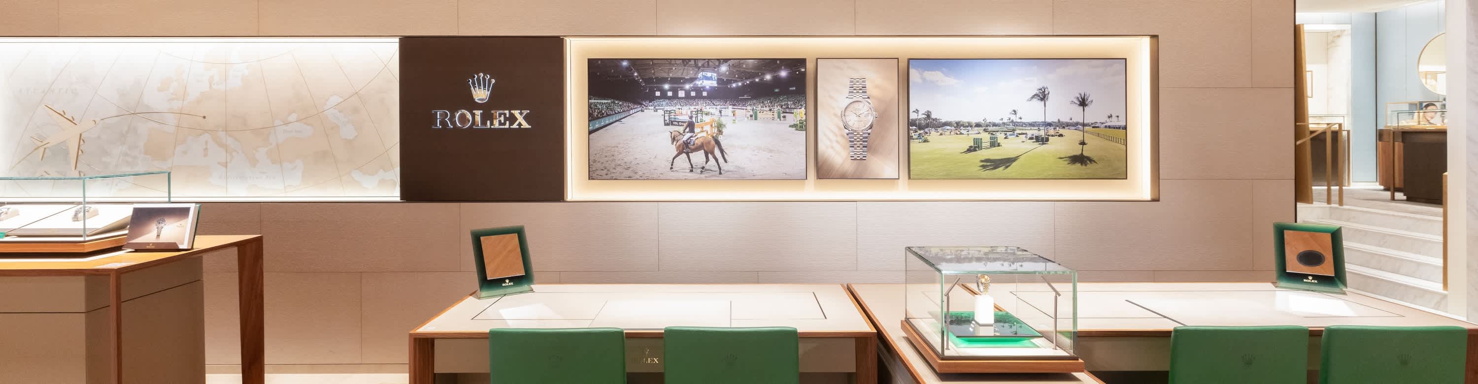 我们的专卖店均按照劳力士日内瓦所制定的室内设计概念进行装潢摆设,象征品牌与ROLEX BOUTIQUE