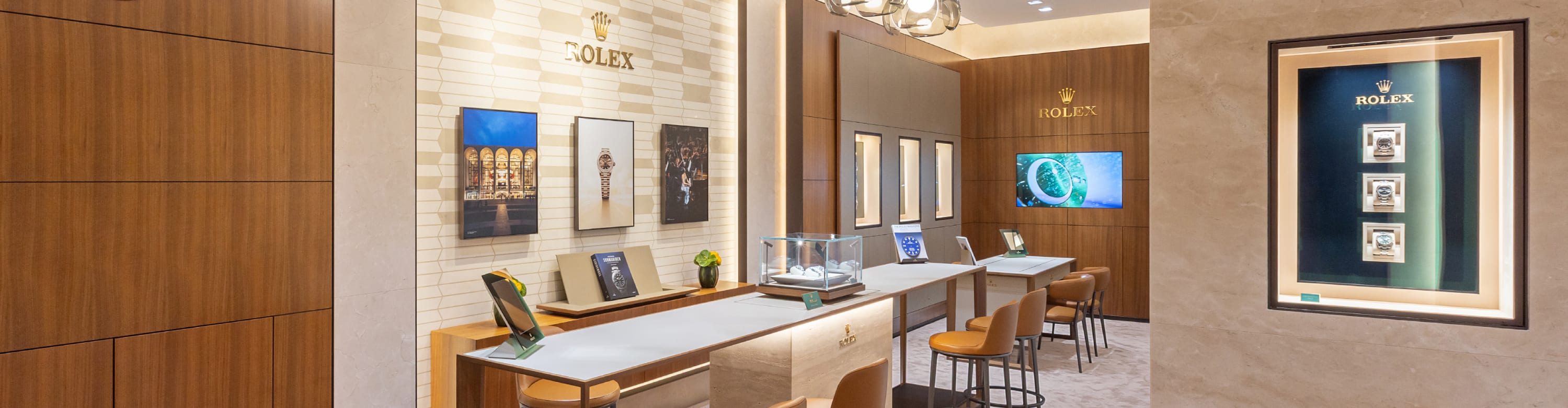我们的专卖店均按照劳力士日内瓦所制定的室内设计概念进行装潢摆设,象征品牌与ROLEX BOUTIQUE