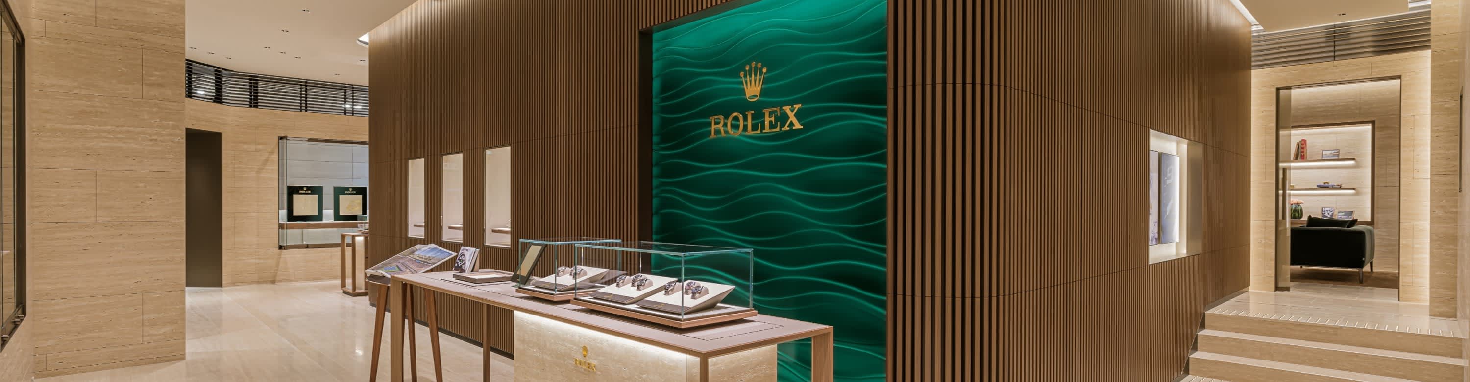 我们的专卖店均按照劳力士日内瓦所制定的室内设计概念进行装潢摆设,象征品牌与ROLEX BOUTIQUE