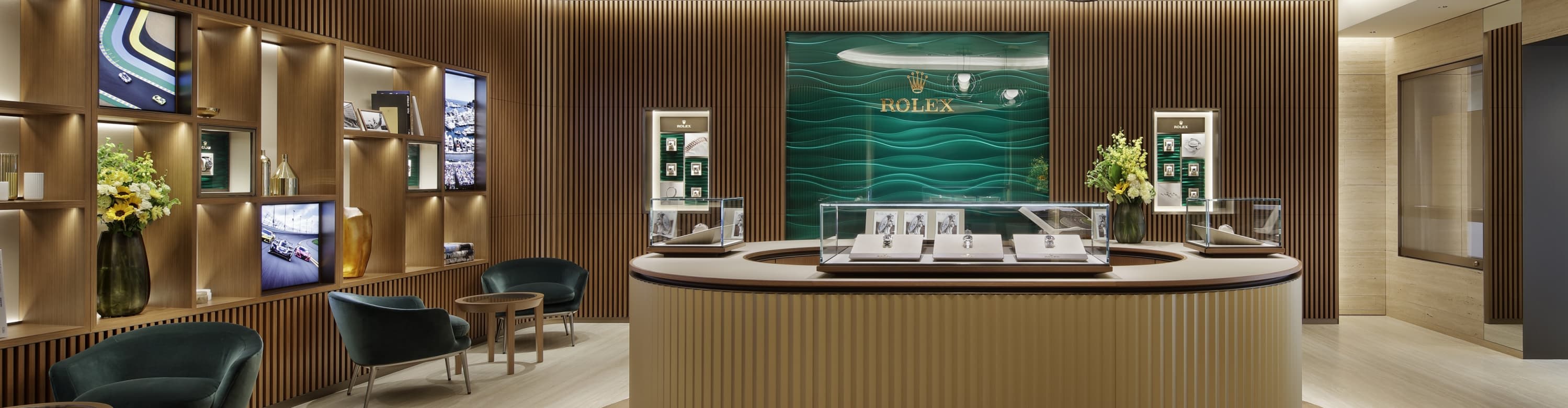 我们的专卖店均按照劳力士日内瓦所制定的室内设计概念进行装潢摆设,象征品牌与ROLEX BOUTIQUE