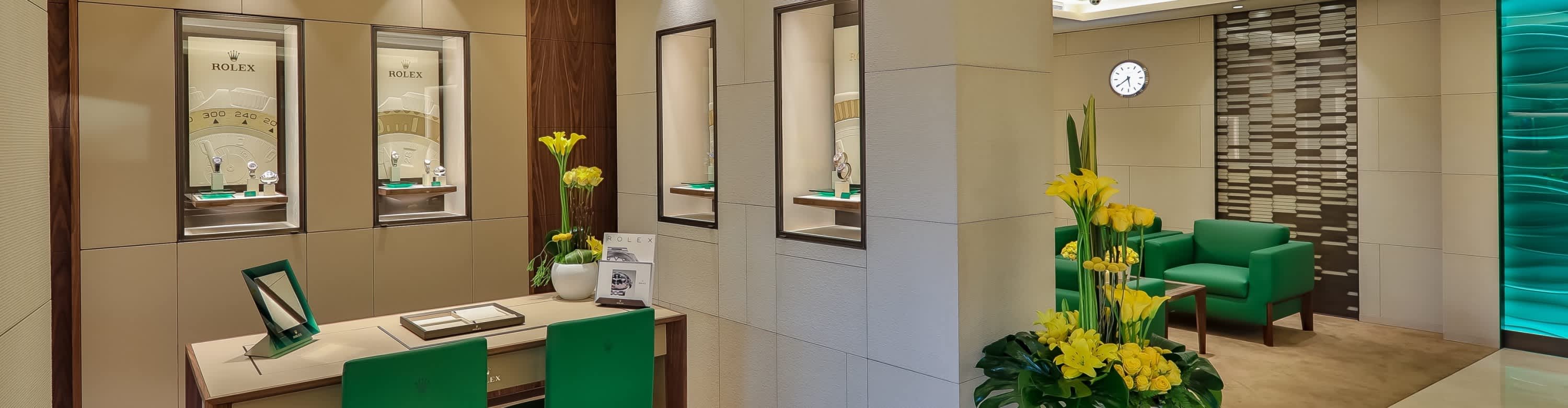 我们的专卖店均按照劳力士日内瓦所制定的室内设计概念进行装潢摆设,象征品牌与ROLEX BOUTIQUE