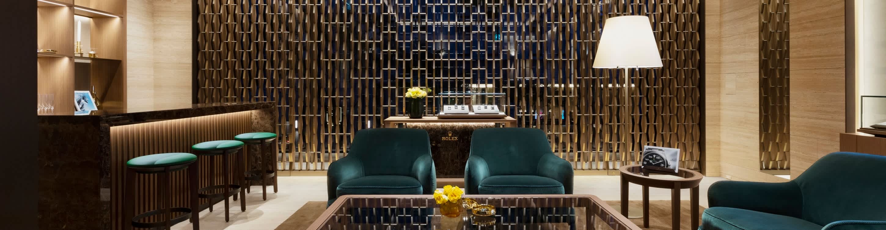 我们的专卖店均按照劳力士日内瓦所制定的室内设计概念进行装潢摆设,象征品牌与ROLEX BOUTIQUE