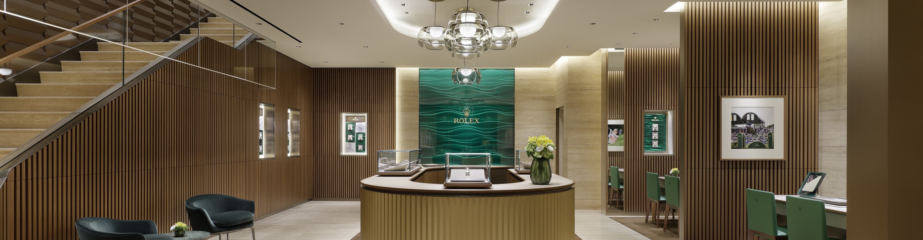 我们的专卖店均按照劳力士日内瓦所制定的室内设计概念进行装潢摆设,象征品牌与ROLEX BOUTIQUE