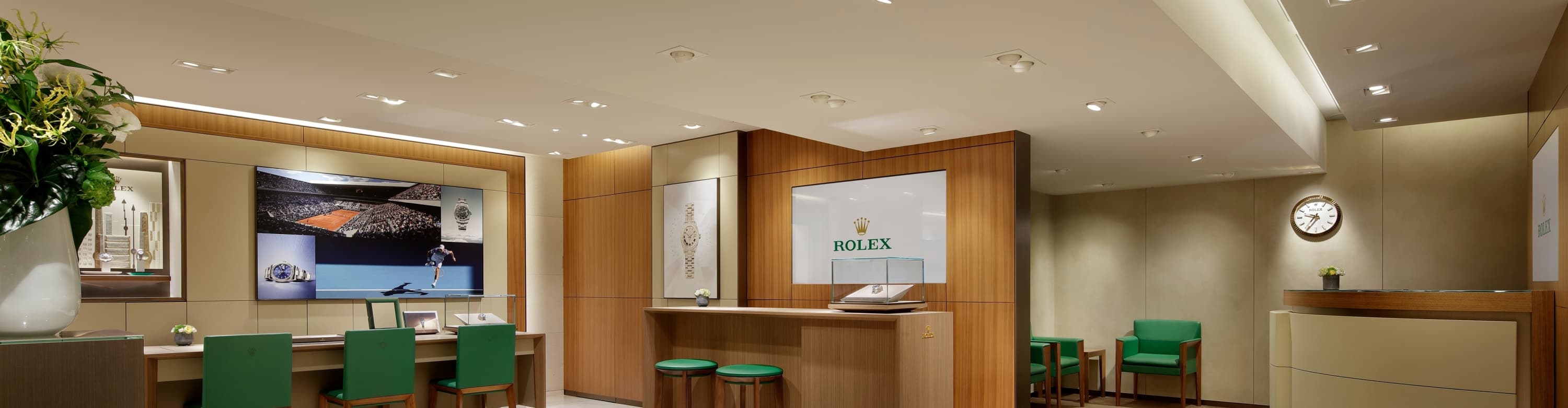 我们的专卖店均按照劳力士日内瓦所制定的室内设计概念进行装潢摆设,象征品牌与ROLEX BOUTIQUE