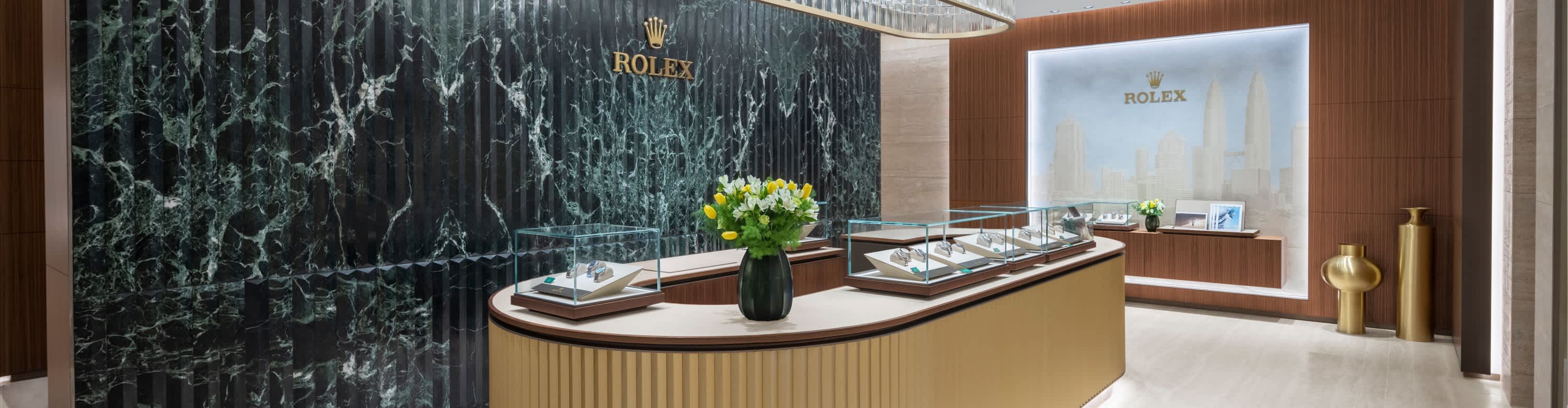 我们的专卖店均按照劳力士日内瓦所制定的室内设计概念进行装潢摆设,象征品牌与ROLEX BOUTIQUE