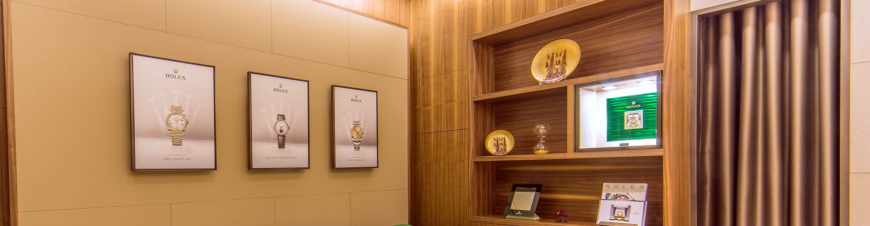 我们的专卖店均按照劳力士日内瓦所制定的室内设计概念进行装潢摆设,象征品牌与ROLEX BOUTIQUE