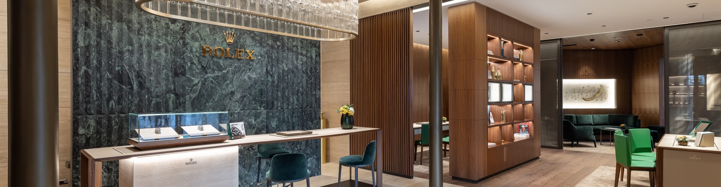 我们的专卖店均按照劳力士日内瓦所制定的室内设计概念进行装潢摆设,象征品牌与ROLEX BOUTIQUE