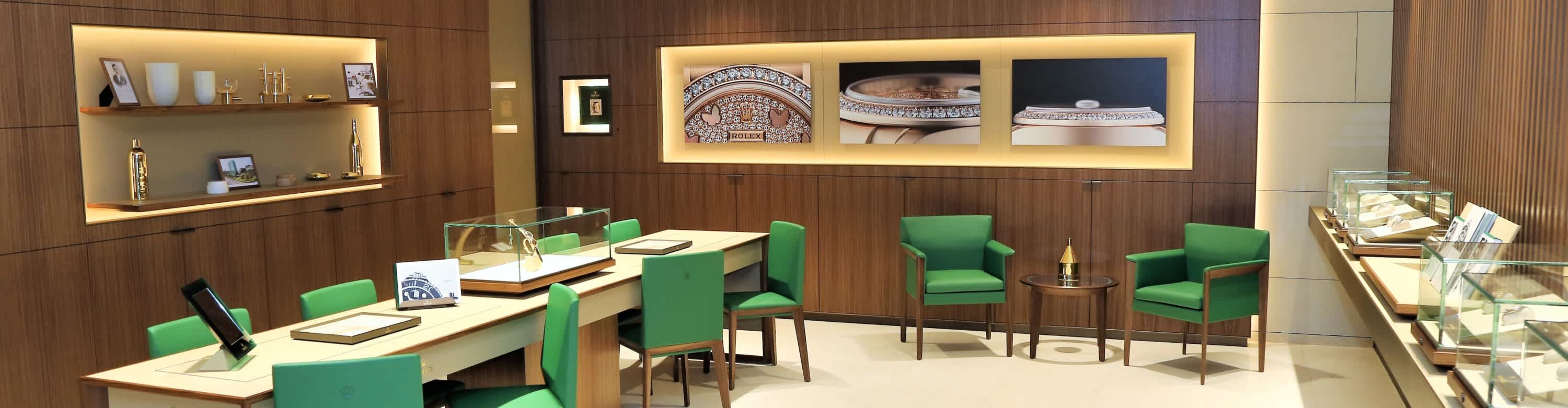 我们的专卖店均按照劳力士日内瓦所制定的室内设计概念进行装潢摆设,象征品牌与ROLEX BOUTIQUE