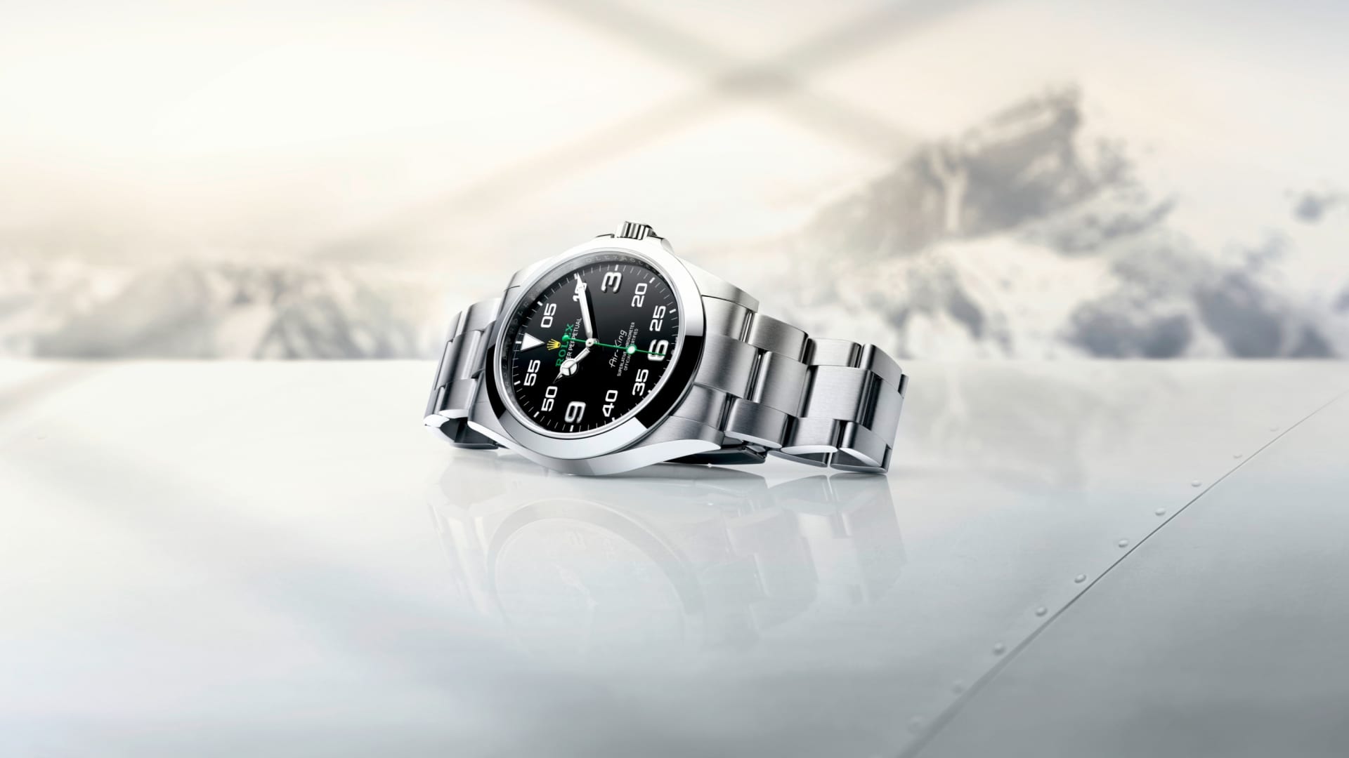 直径40毫米的蚝式钢表壳,配备实心链节蚝式(Oyster)表带及富个性黑色表盘,让空中霸王型延续原款劳力士蚝式腕表与航空领域的渊源。