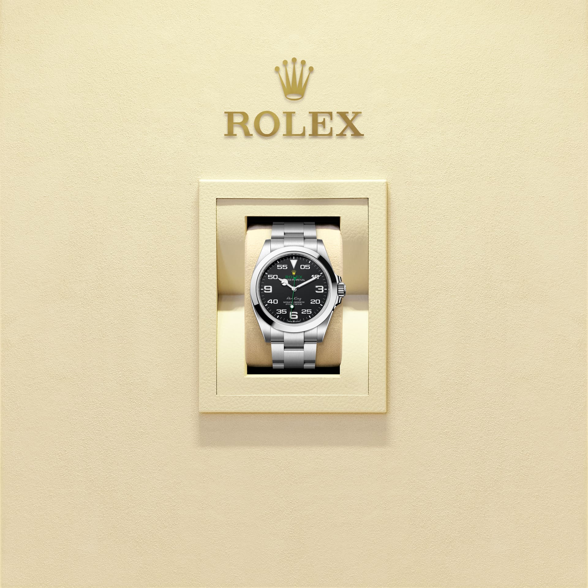 表盘上的“Air‑King”(空中霸王型)字样,所用字体于1950年代专为原款腕表而设计。