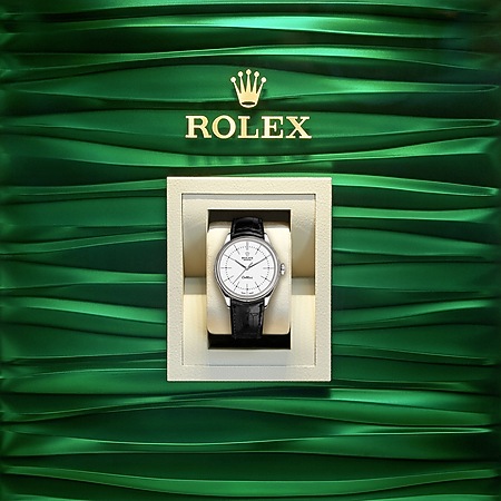 切利尼时间型腕表18ct白色黄金款,搭配白色表盘、双外圈及皮带。