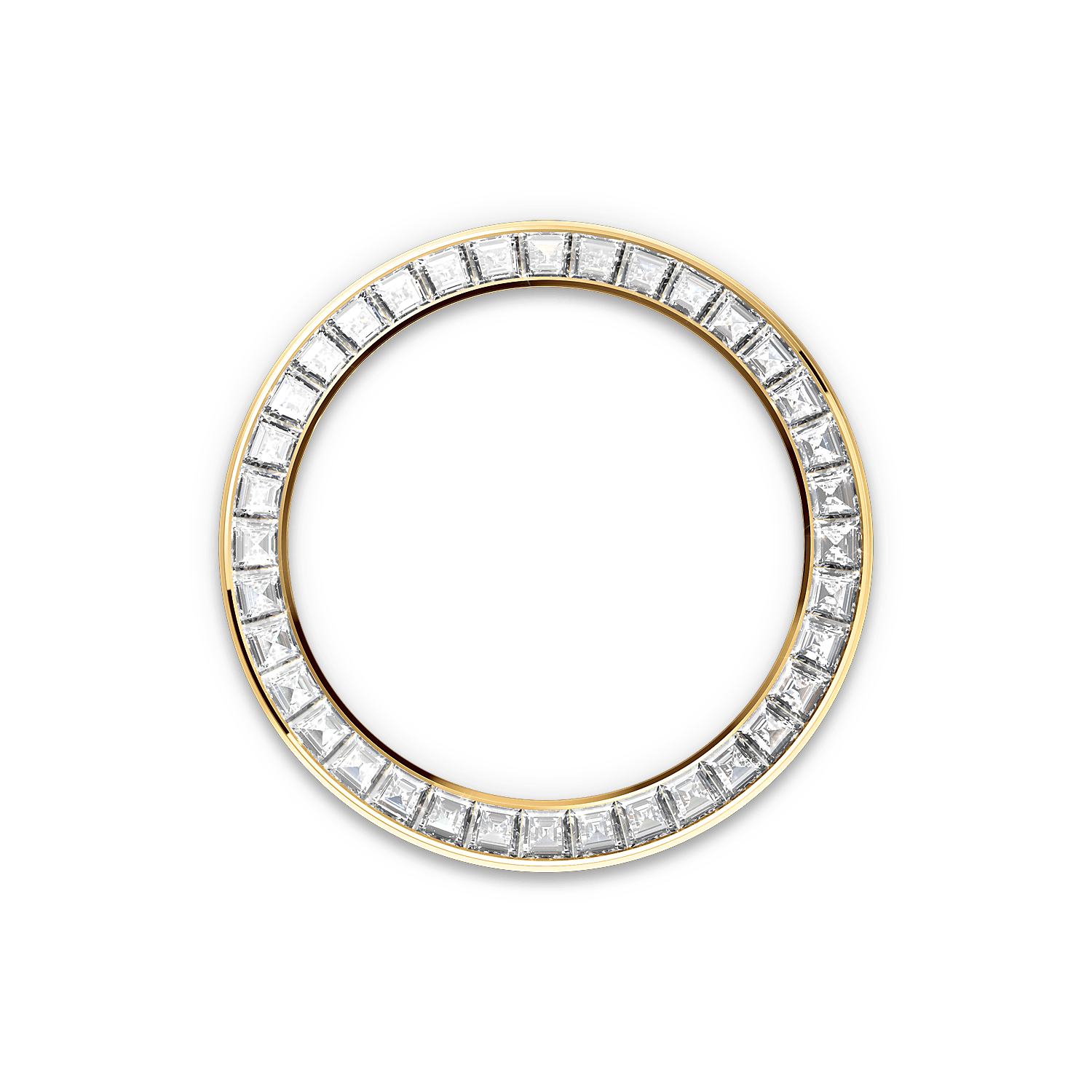 外圈镶嵌36颗梯形钻石,光彩照人,熠熠生辉。