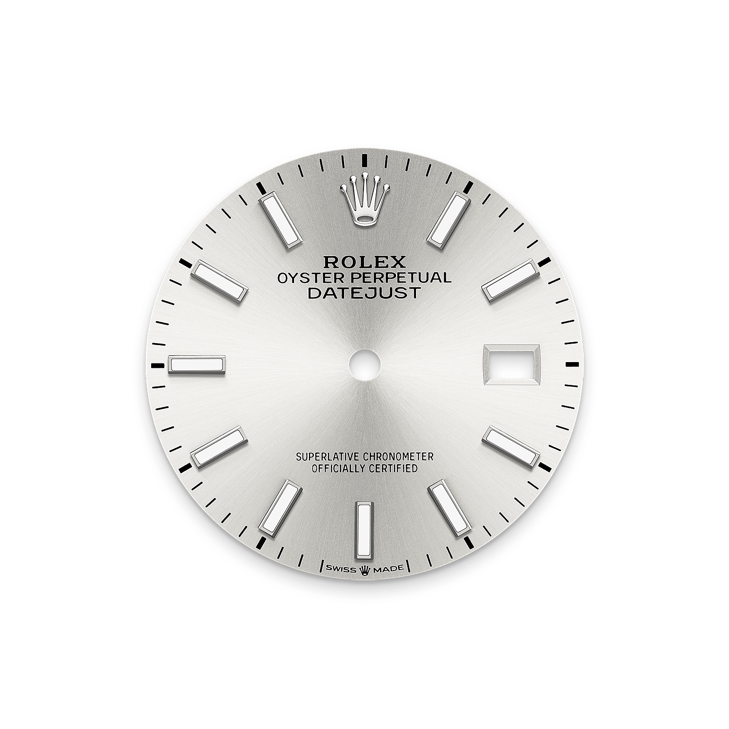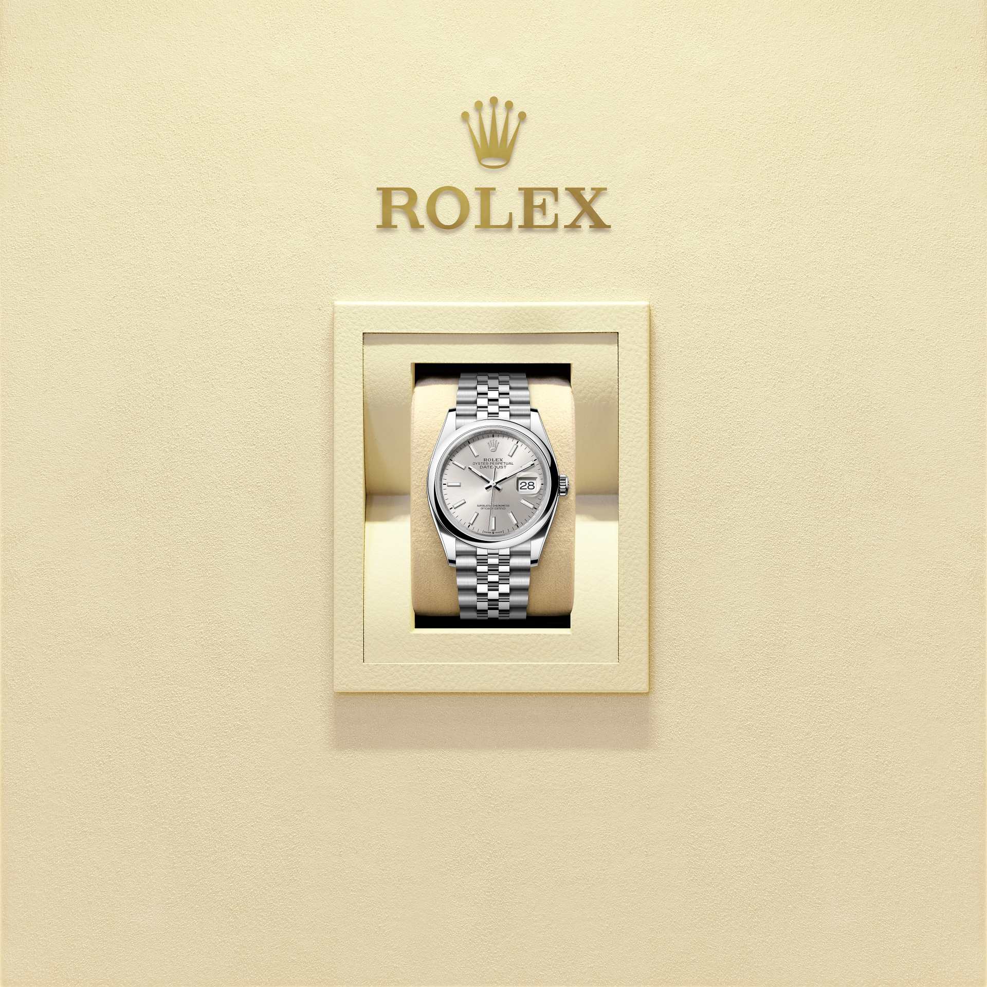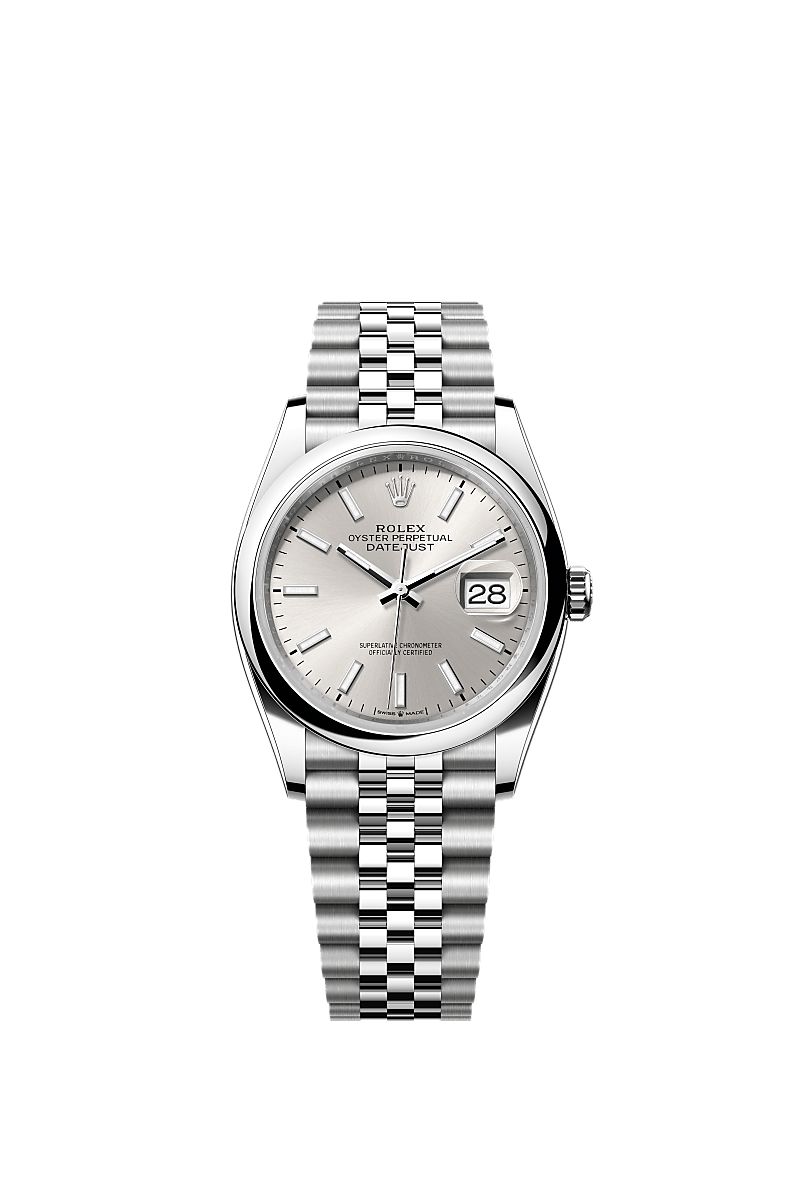 蚝式恒动日志型 36腕表蚝式钢款,搭配银色表盘及纪念型(Jubilee)表带。